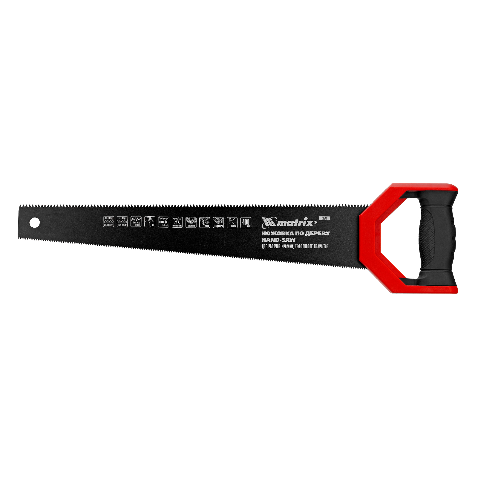 Ножовка по дереву Matrix UNIVERSAL 23571 с полотном длиной 400 мм и закаленными зубьями c заточкой 3D и 2D имеет две рабочие кромки с шагом зубьев 13-14 TPI и 7-8 TPI. Может применяться для выполнения столярных и плотницких работ разной степени точности. Мелкие зубья с 2D-заточкой обеспечивают ровный и точный рез в направлении от себя и к себе. Режущая кромка с шагом зубьев 7-8 TPI и с 3D-заточкой используется для быстрой и чистой распиловки. Ножовкой можно пилить древесину, фанеру, ДСП.