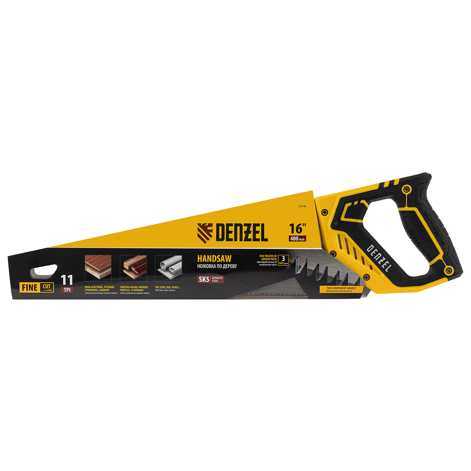 Ножовка по дереву, 400 мм, 11 TPI, зуб 3D, двухкомпонентная рукоятка Denzel в Воронеже