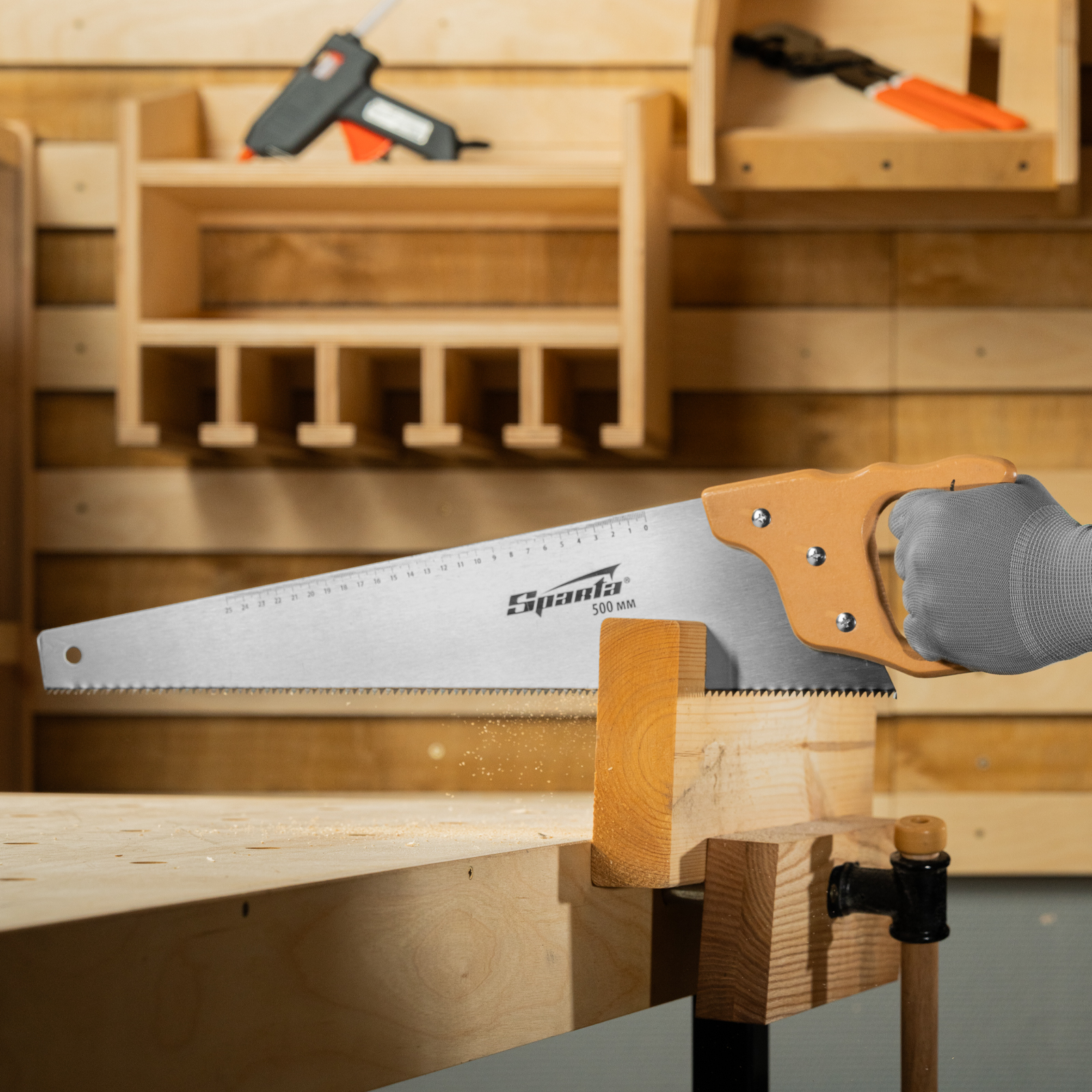 Ножовка по дереву, 500 мм, 7-8 TPI, каленый зуб, линейка, деревянная рукоятка Sparta в Воронеже