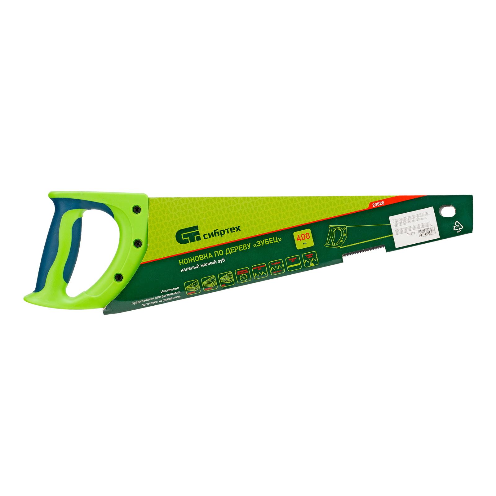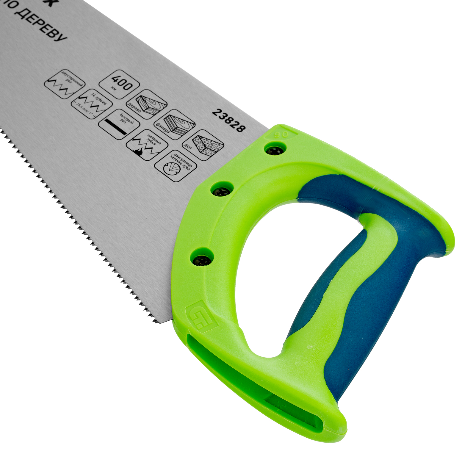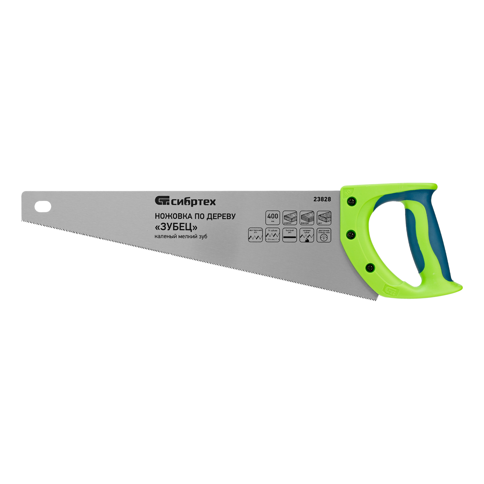 Ножовка по дереву Сибртех «Зубец» 23828 с полотном длиной 400 мм, калеными зубьями с 2D-заточкой и шагом 14 TPI, двухкомпонентной рукояткой, предназначена для точных пильных работ по древесине, фанере и ДСП. Подходит для двустороннего реза. Режущая часть с мелкими зубьями в количестве 14 на дюйм выполняет аккуратный и чистый распил. При необходимости кромку ножовки можно заточить. Инструмент будет полезен в столярной мастерской, а также пригодится в быту.