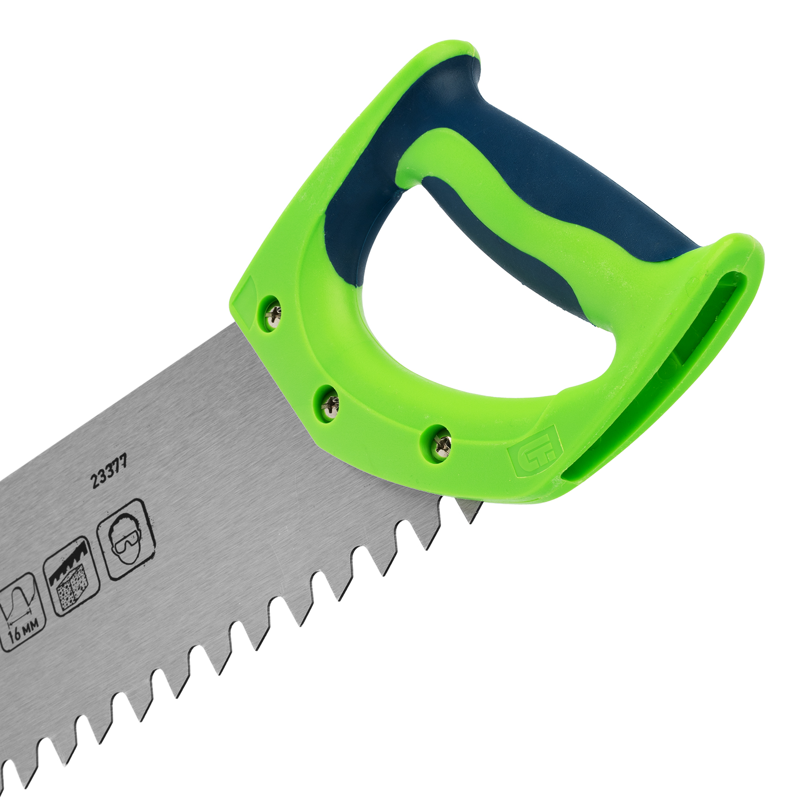 Ножовка Сибртех 23377 с полотном длиной 550 мм, с двухкомпонентной рукояткой, используется для распиливания небольших блоков из пенобетона. Высокая эффективность работы достигается благодаря крупным зубьям с шагом 16 мм и двухгранной заточкой. Ножовка применяется во время строительных работ.