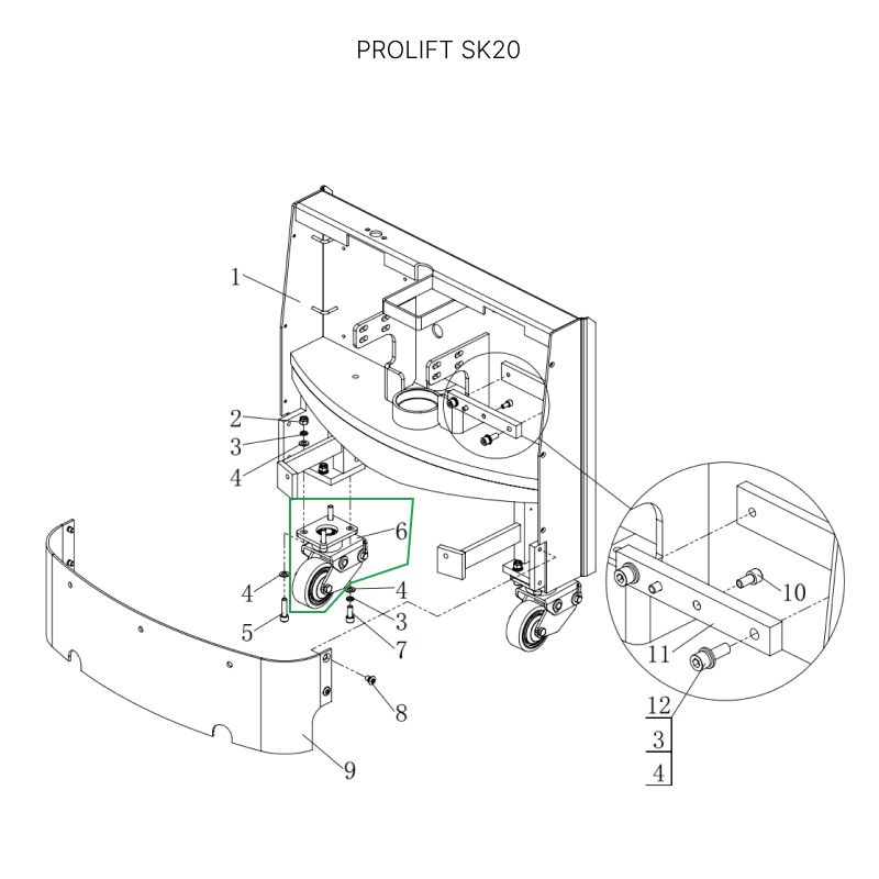 Опорное колесо в сборе с поворотной опорой для тележек SK20 в Воронеже