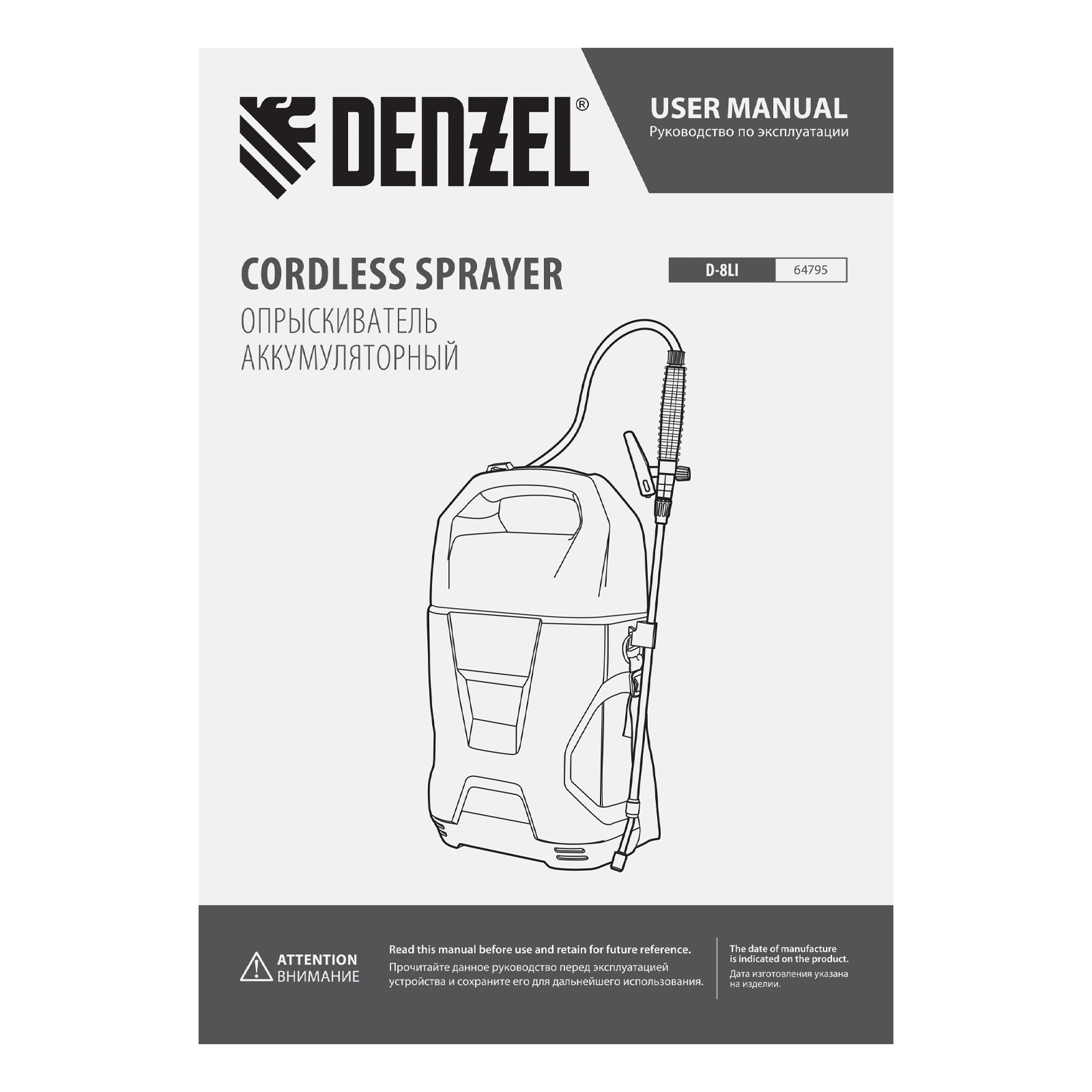 Опрыскиватель аккумуляторный D-8LI, 8 л, 12 В, 2 Ач Denzel в Воронеже