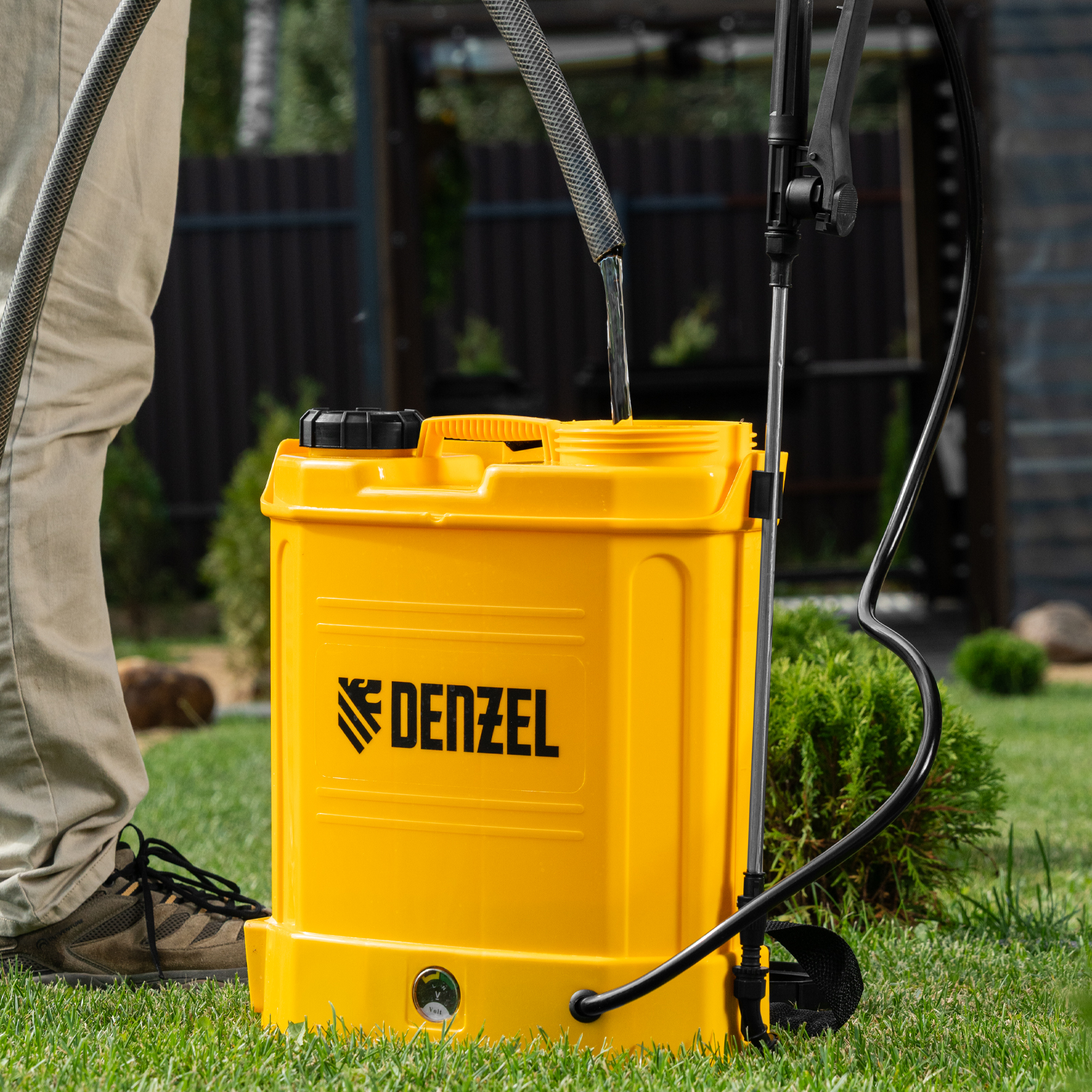 - Удобное перемещение — плечевые ремни с мягкими накладками равномерно распределяют вес опрыскивателя, снижая нагрузку на спину.