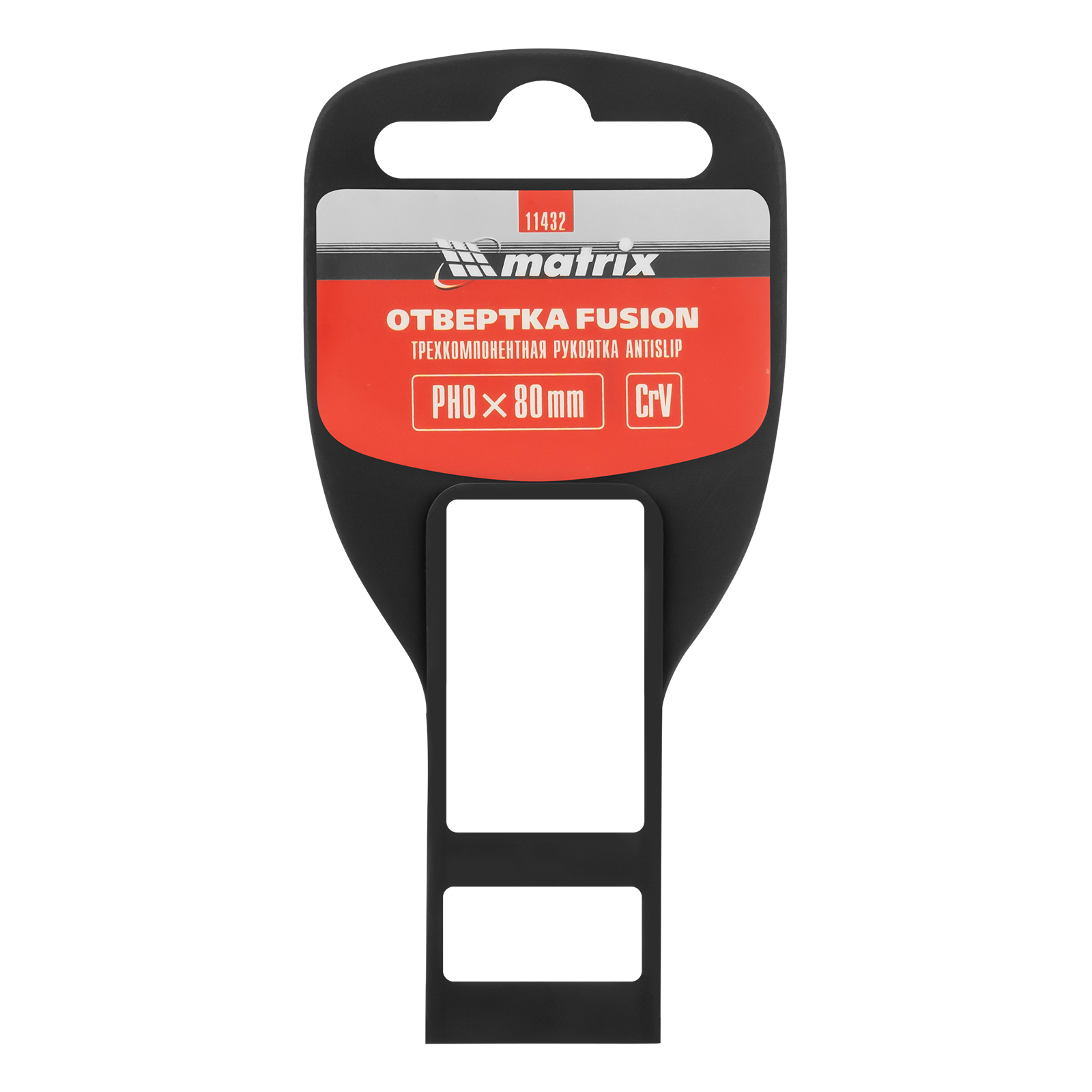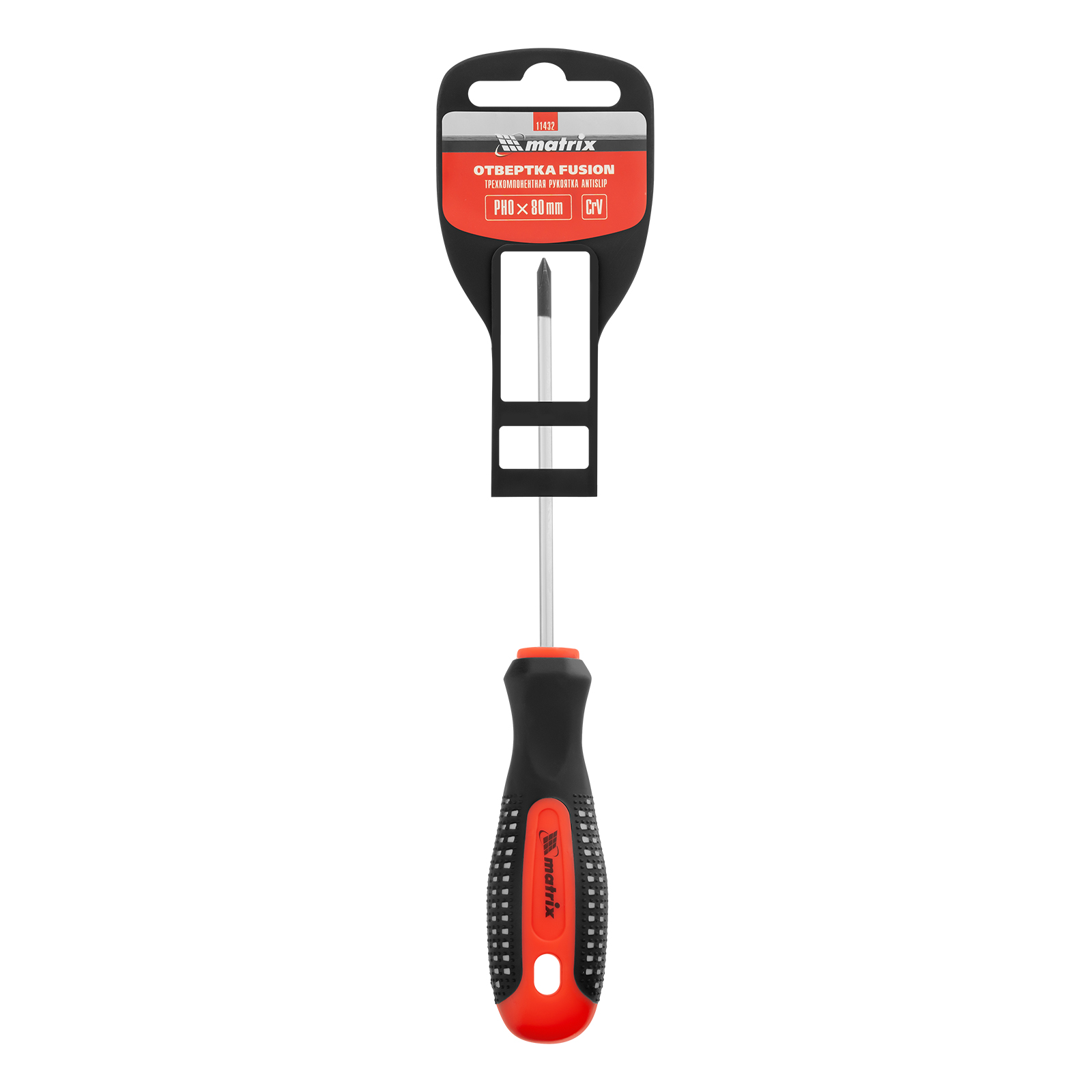 Отвертка Fusion, PH0 х 80 мм, CrV, трехкомпонентная рукоятка "Anti slip" Matrix в Воронеже