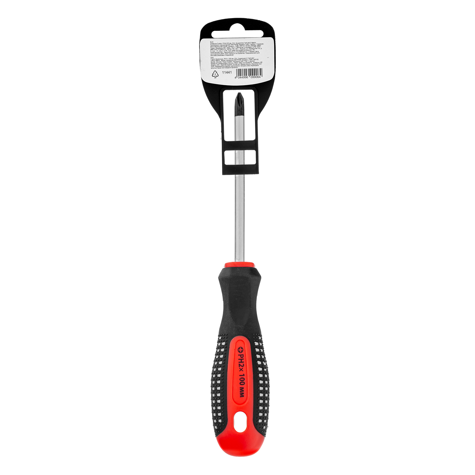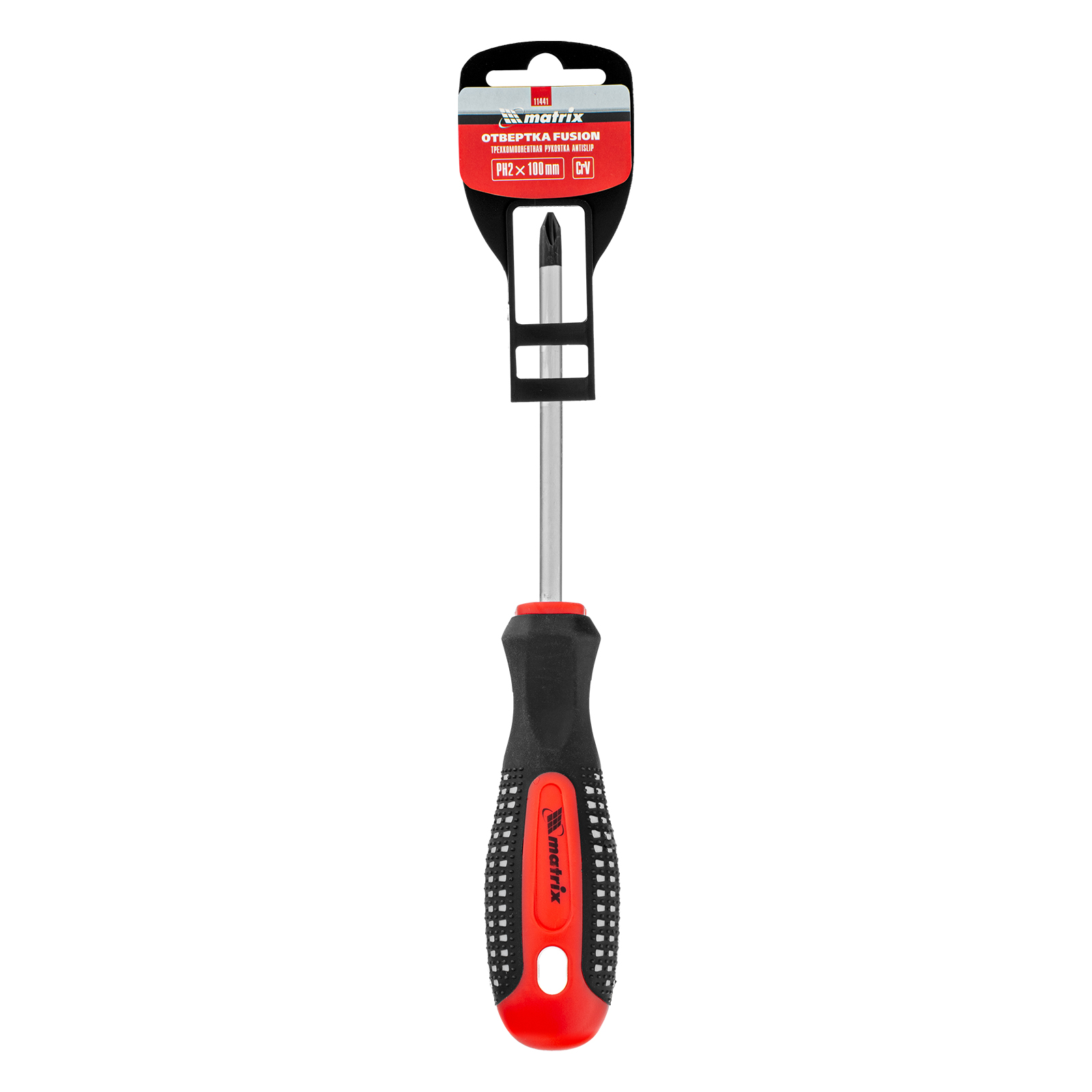 Отвертка Fusion, PH2 х 100 мм, CrV, трехкомпонентная рукоятка "Anti slip" Matrix в Воронеже