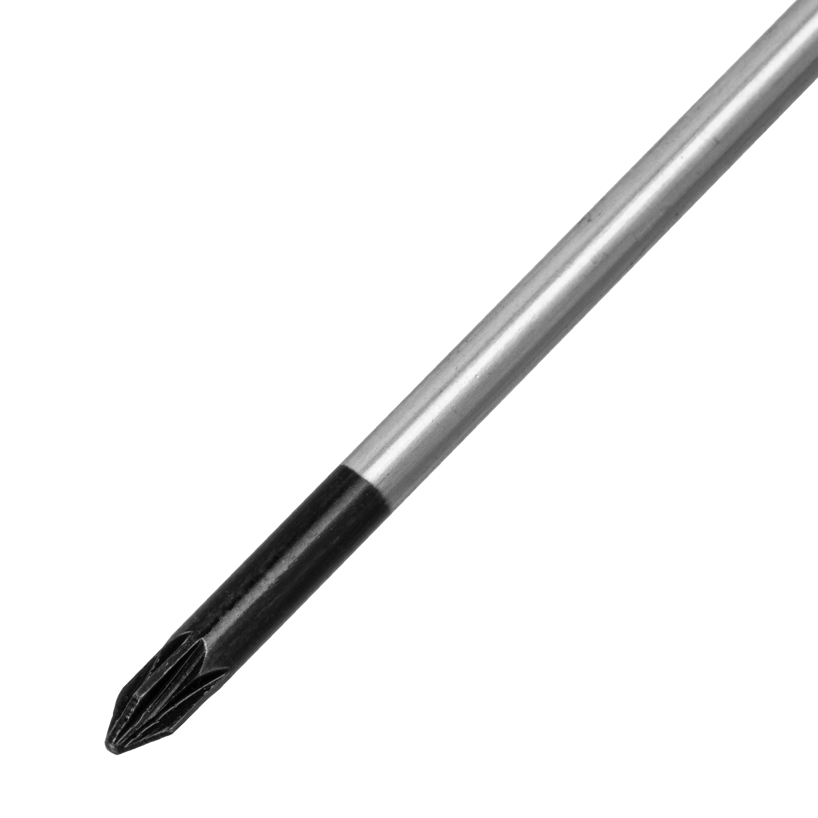 - Стержень и жало выполнены из износостойкой легированной стали CrV твердостью 50-52 HRC, что обеспечивает долгий срок службы отвертки.