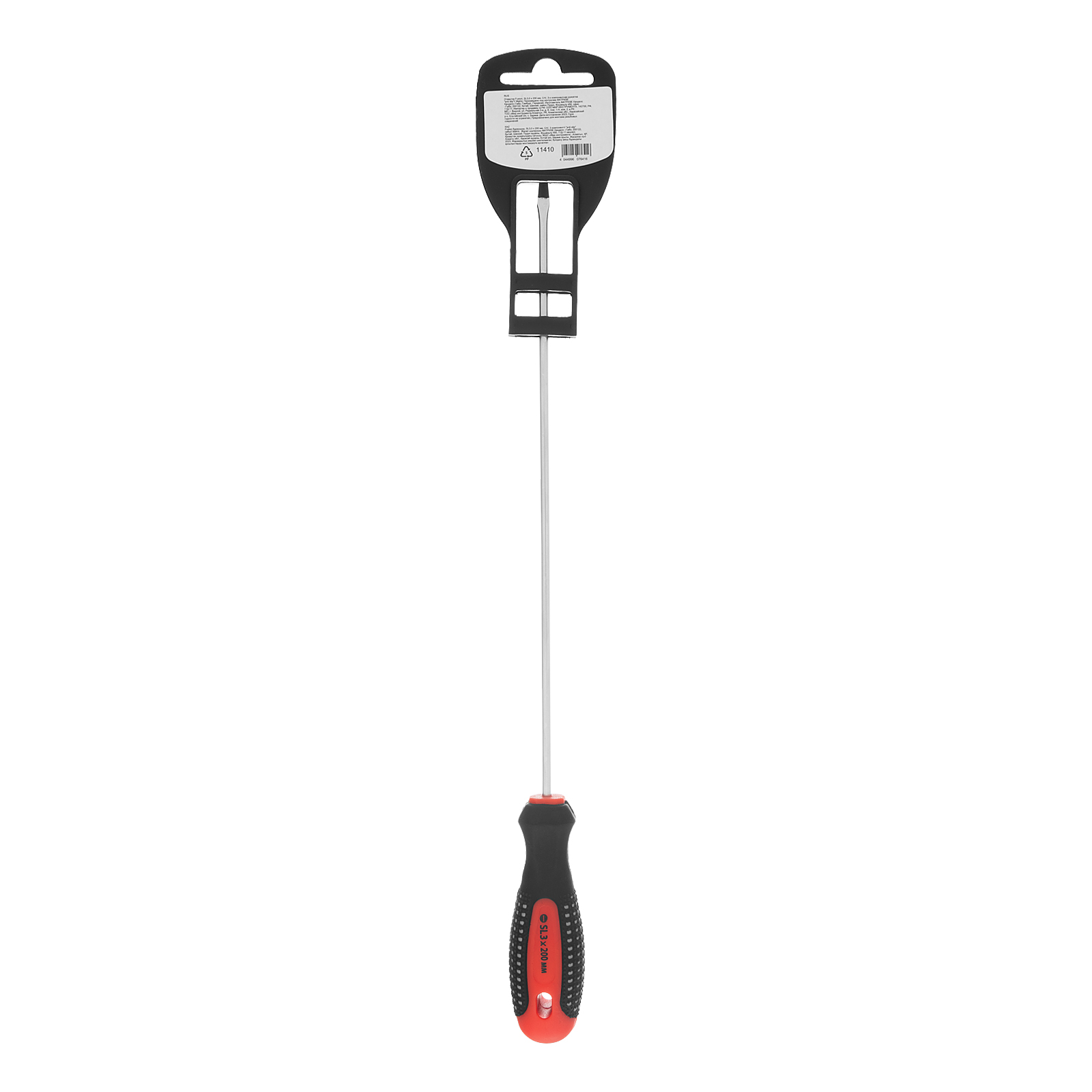 Отвертка Matrix Fusion 11410 под шлиц SL3,0, со стержнем длиной 200 мм, из стали CrV, с 3-компонентной рукояткой «anti slip», предназначена для завинчивания и отвинчивания резьбового крепежа со шлицем Slotted «минус». Рассчитана на профессиональное использование, используется для ремонта автомобилей, монтажа конструкций и решения других задач. Стержень длиной 200 мм делает отвертку оптимальным инструментом для работы с крепежом в значительных углублениях.