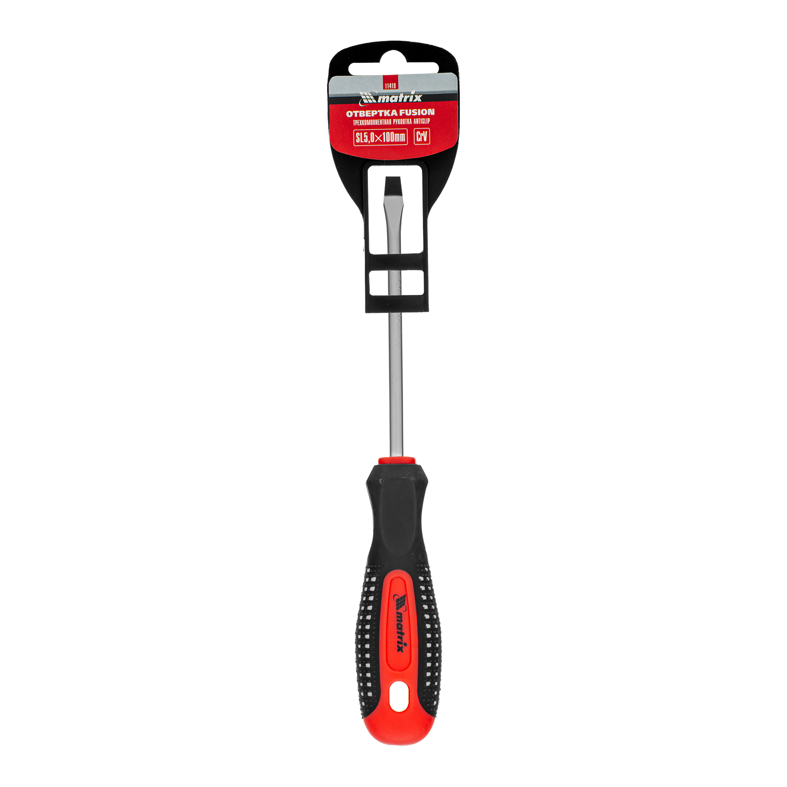 Отвертка Fusion, SL5 х 100 мм, CrV, трехкомпонентная рукоятка "Anti slip" Matrix в Воронеже