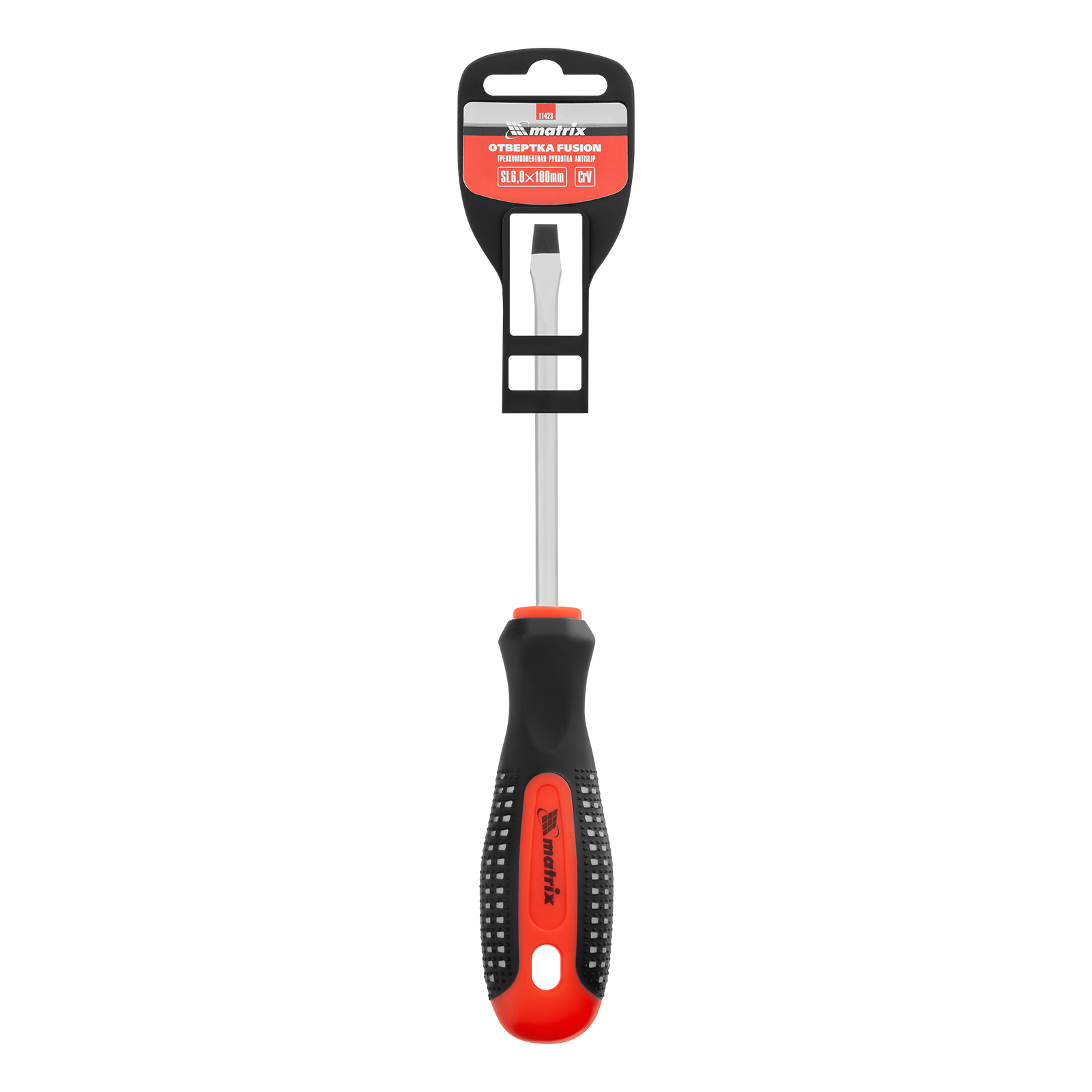 Отвертка Fusion, SL6 х 100 мм, CrV, трехкомпонентная рукоятка "Anti slip" Matrix в Воронеже