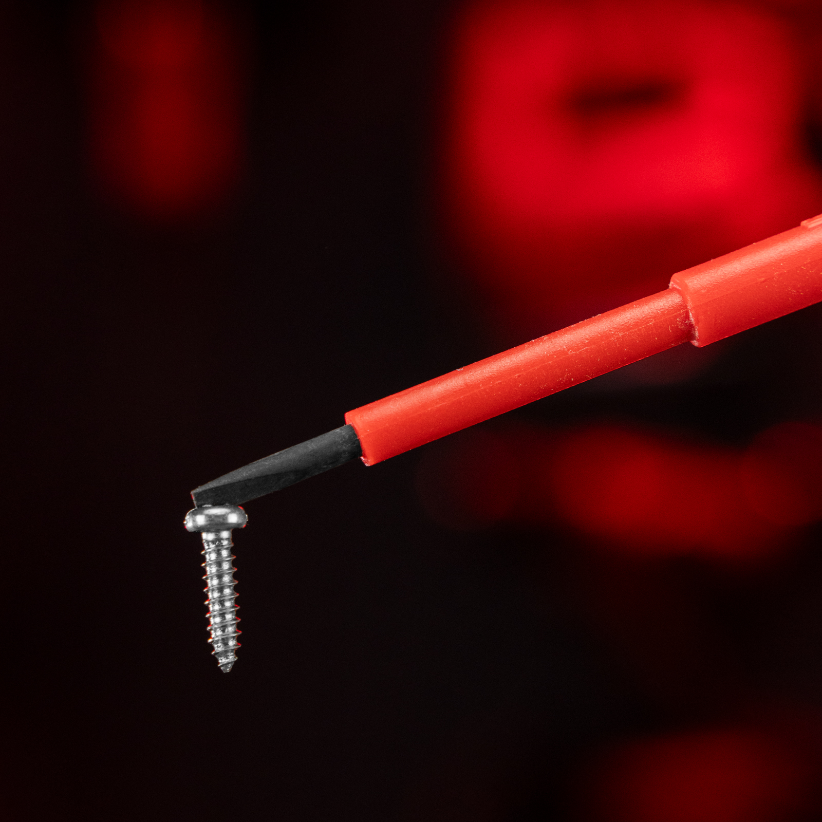 - Намагниченный наконечник — крепеж фиксируется на стержне отвертки и не выпадает.