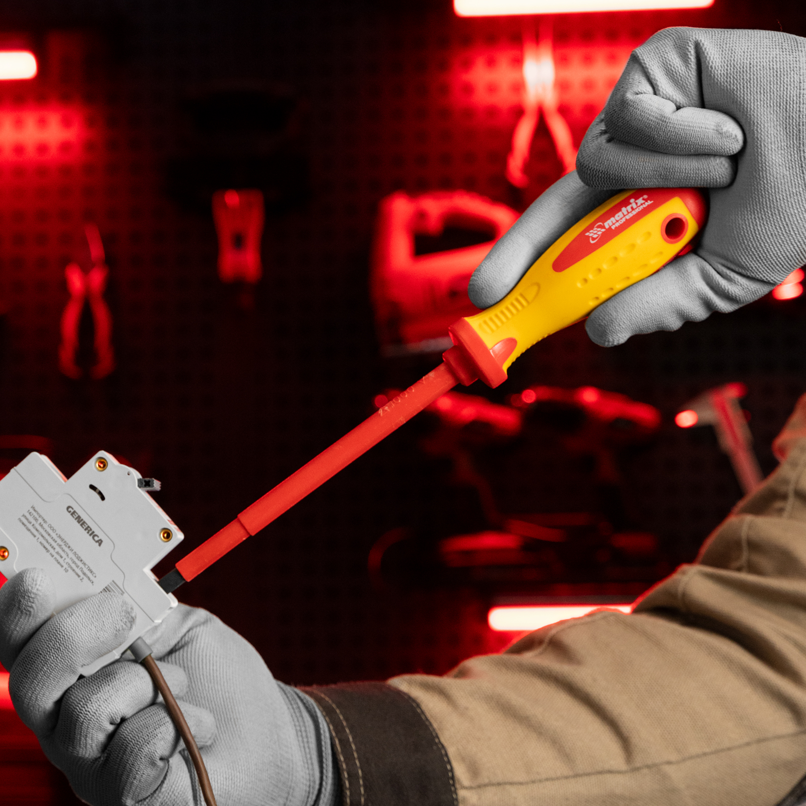 Отвертка Matrix Insulated 12920, SL6,5 x 150 мм, из стали CrMo, с двухкомпонентной рукояткой до 1000 В, используется при проведении ремонтных с крепежом типа Slotted «минус». Благодаря диэлектрическому покрытию она выдерживает напряжение до 1000 В, поэтому оптимально подходит для настройки электрооборудования, установки розеток и др. Важно — техника безопасности запрещает работать под напряжением!