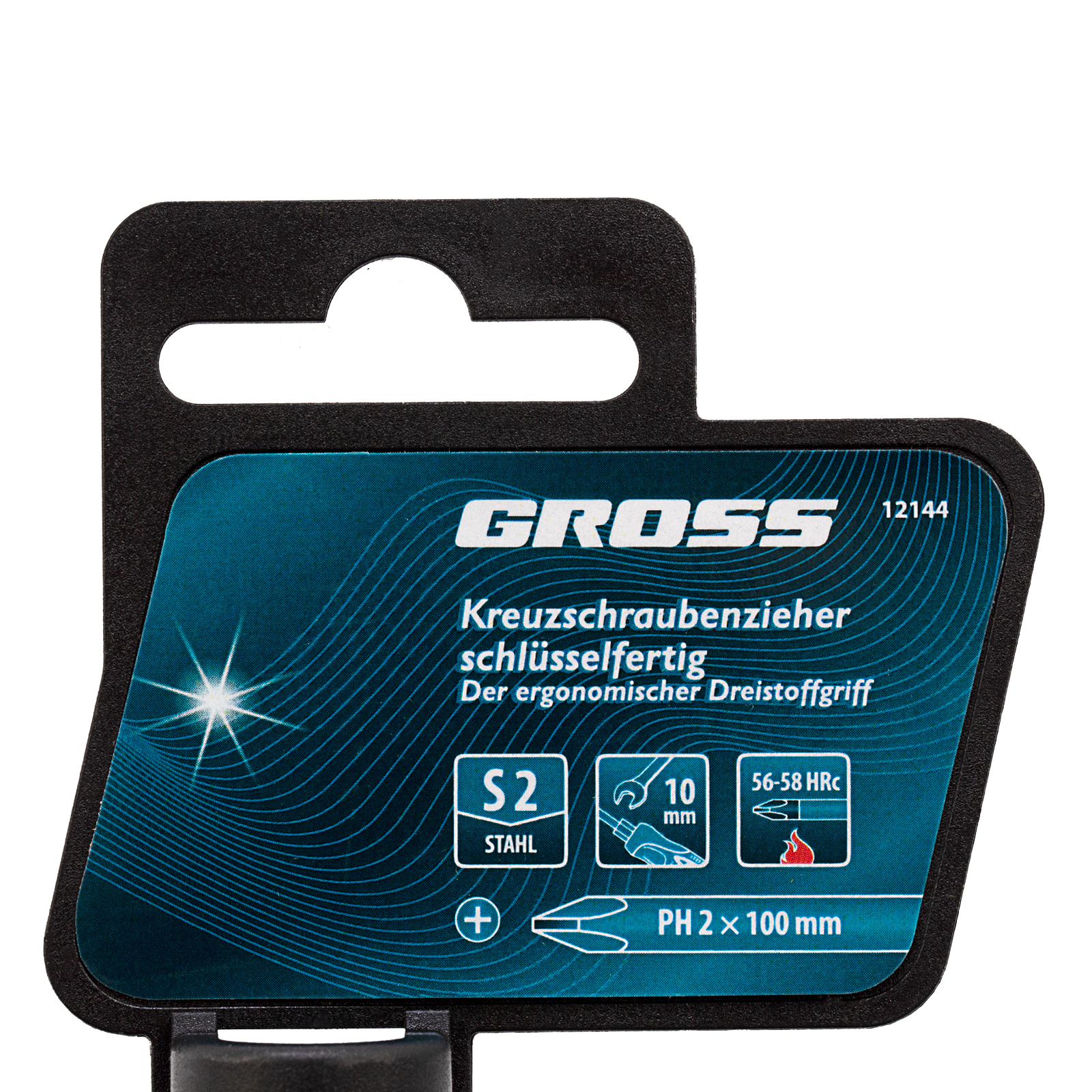 Отвертка Gross 12144, PH2 x 100 мм, из стали S2, с трехкомпонентной рукояткой, применяется при необходимости монтажа и демонтажа крепежных элементов типа Phillips «крест». Пригодится на строительной площадке или дома во время ремонта. Отверткой можно работать в углублениях благодаря стержню длиной 100 мм. Инструмент подходит для профессионального использования.