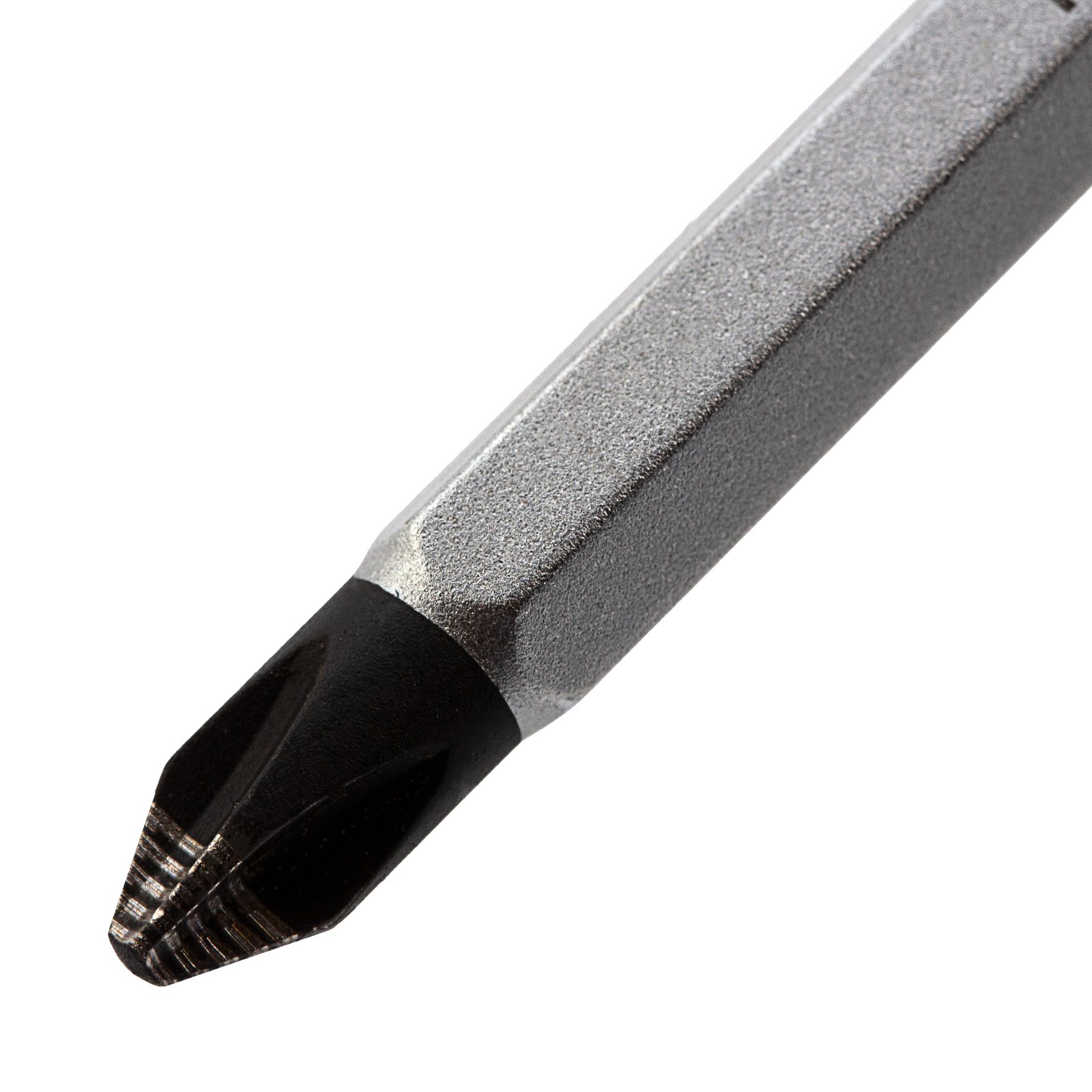 - Быстрый поиск нужного инструмента — на затыльнике рукоятки и стержне обозначены тип шлица и длина стержня.