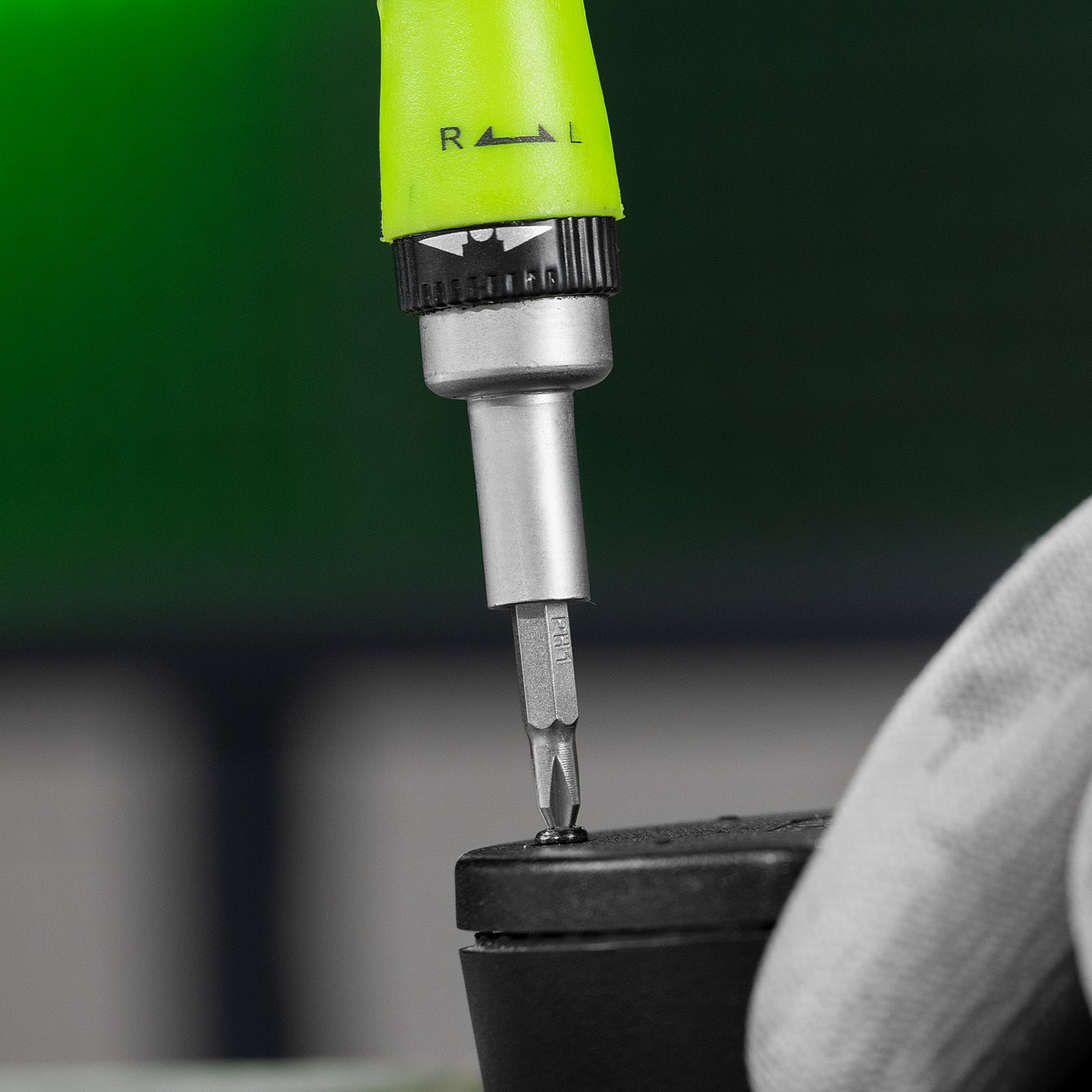 - Реверсивный механизм — с отверткой удобно работать, т.к. не нужно переставлять руку для ее вращения.