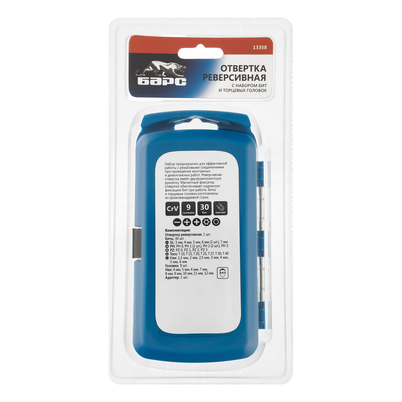 Реверсивная отвертка с набором бит и торцевых головок Барс 13358 используется для работы с резьбовыми соединениями, имеющими профиль SL, PH, PZ, TORX или HEX. Магнитный держатель позволяет быстро менять насадки, что особенно актуально при больших объемах работ. Отвертка с насадками незаменимы при осуществлении ремонтных, строительных и монтажных работ.