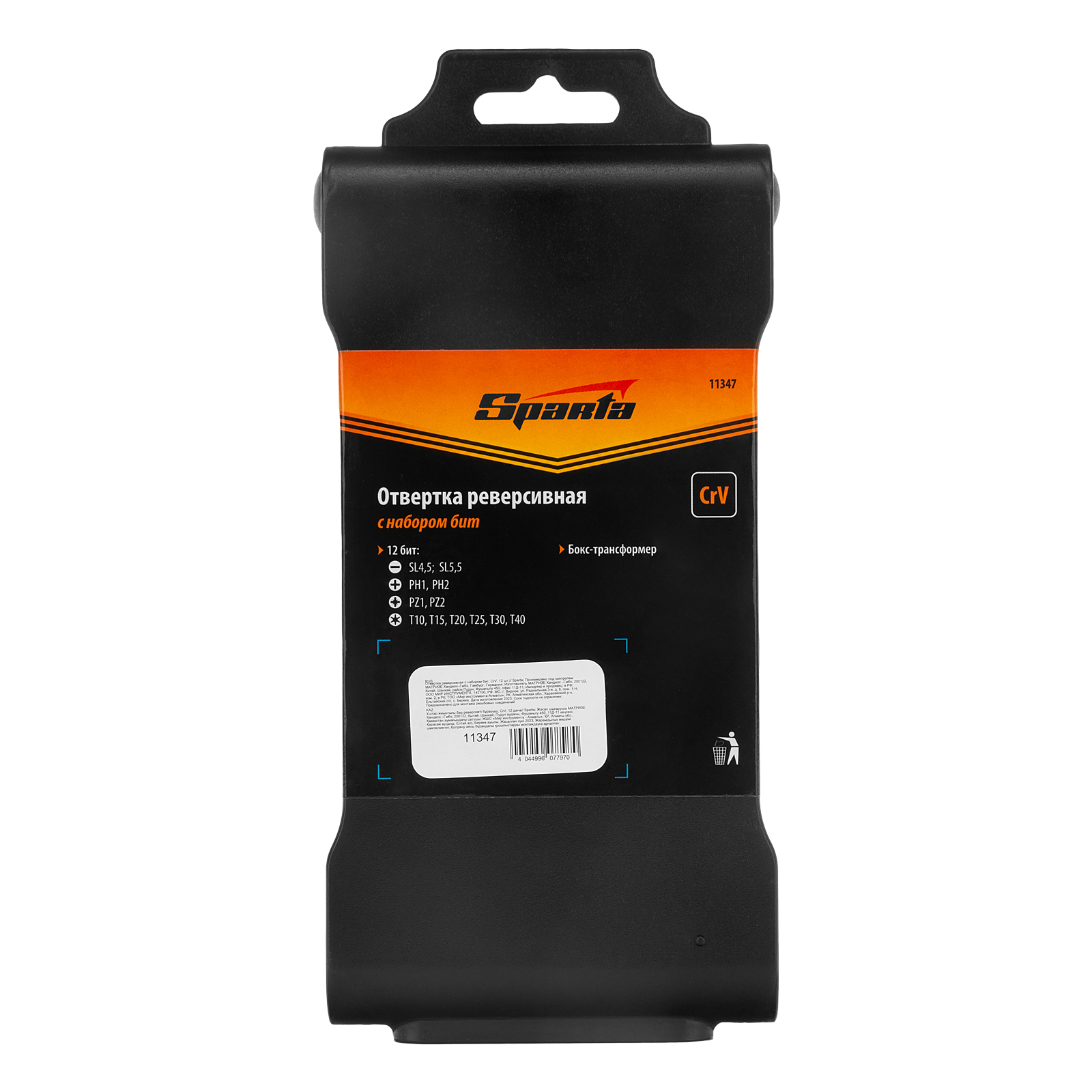 Реверсивная отвертка Sparta 11347 с набором из 12 бит из стали CrV пригодится во время ремонтных и несложных строительных работ. Входящие в комплект биты длиной 25 мм позволяют осуществлять монтаж/демонтаж резьбовых соединений со шлицами SL, PH, PZ, Torx.