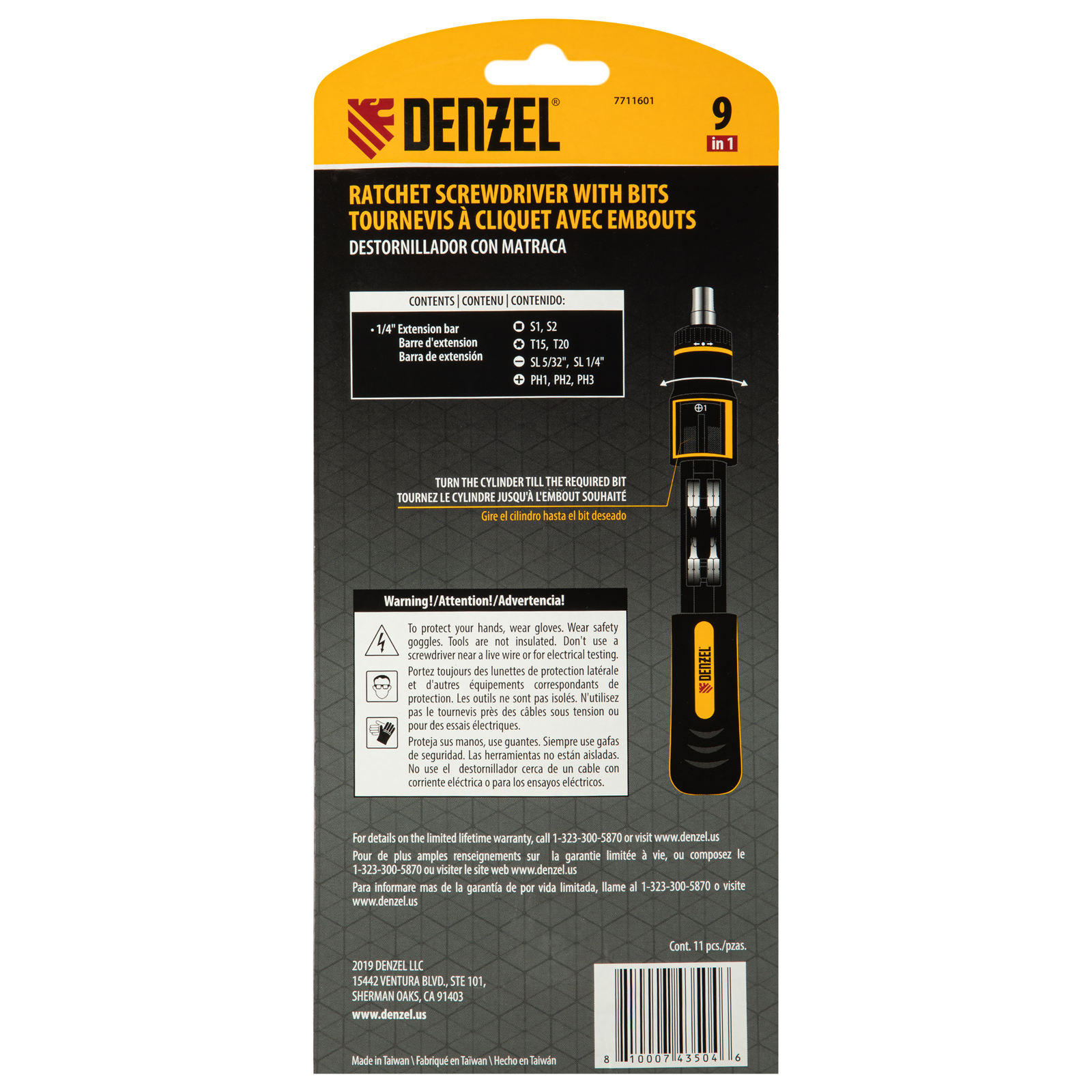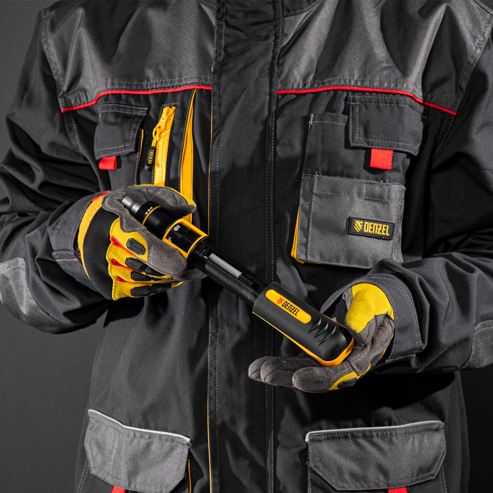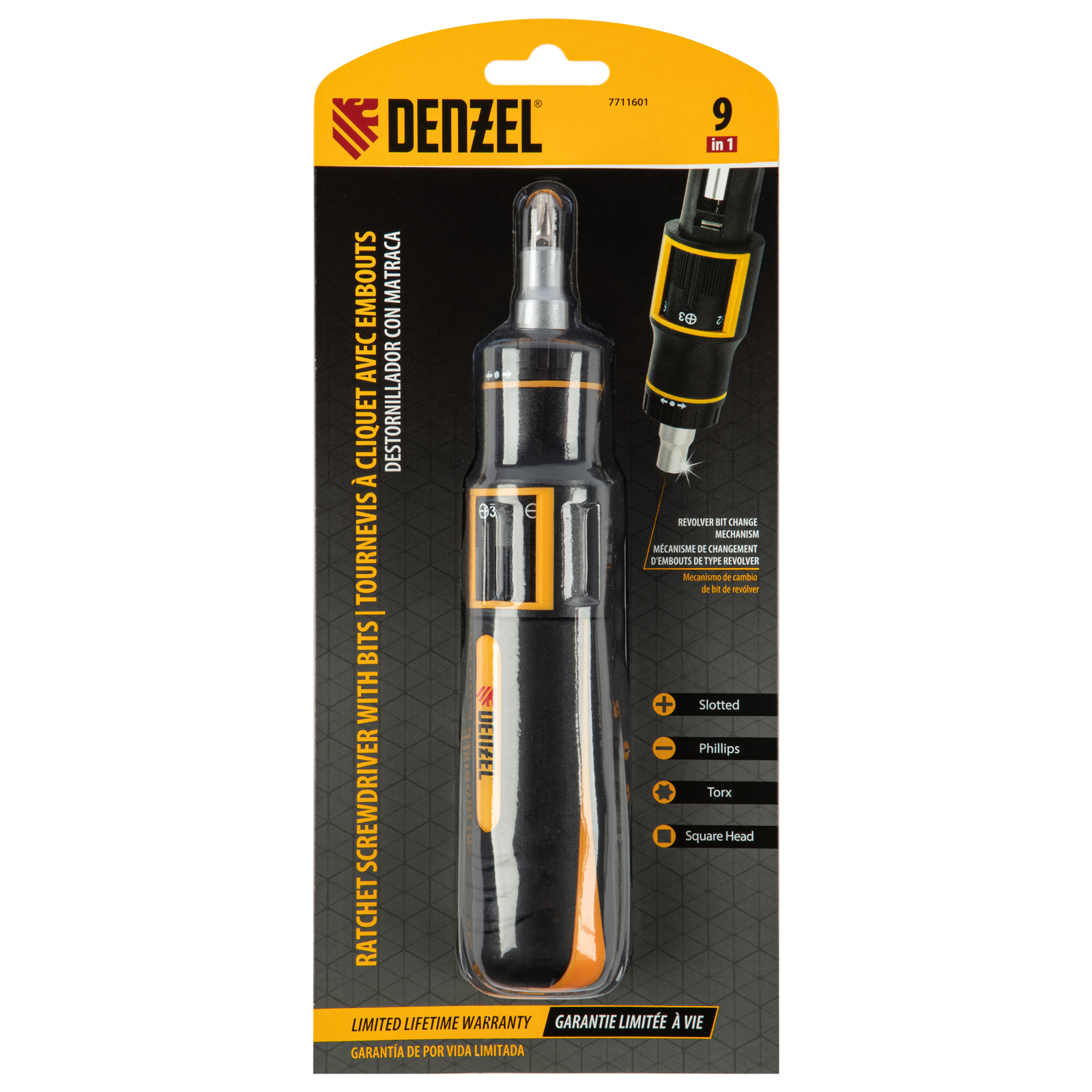Отвертка реверсивная с револьверным механизмом, 11 шт, сталь S2 Denzel в Воронеже