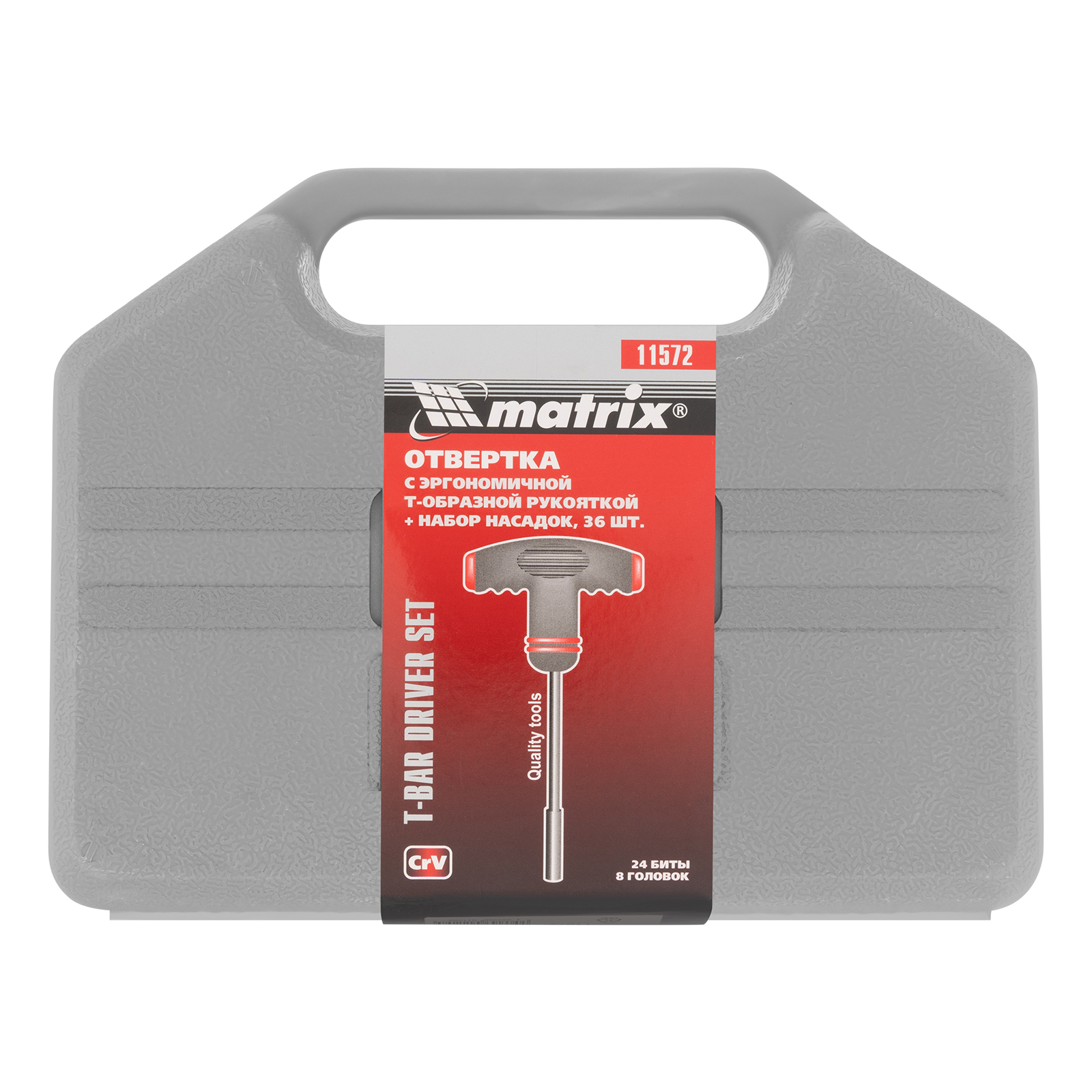 Отвертка с Т-образной эргономичной ручкой и набором насадок, 36 шт, CrV, пластиковый бокс Matrix в Воронеже