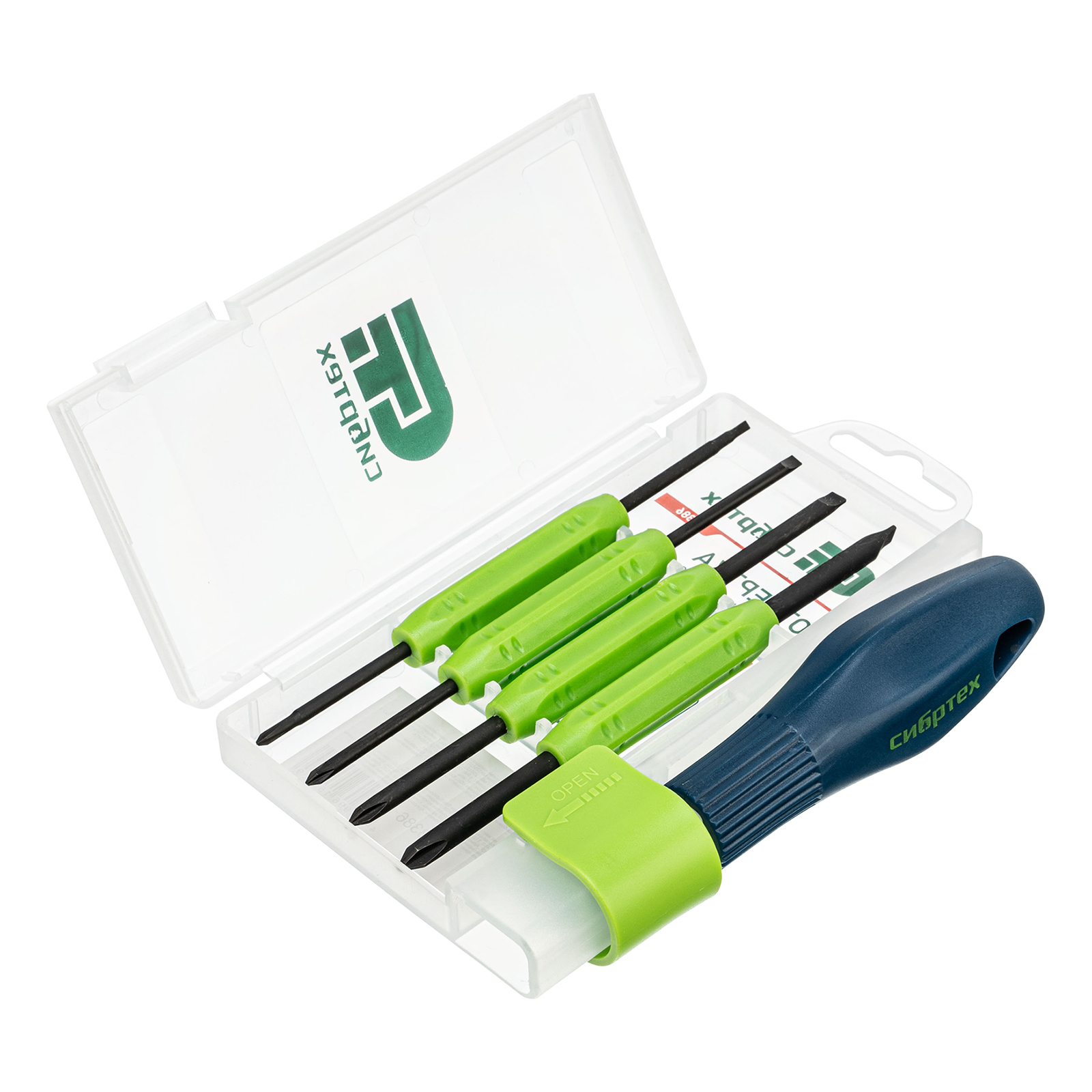 Отвертка со сменными двухсторонними насадками, 8 в 1, пластиковый кейс, CrV Сибртех в Воронеже