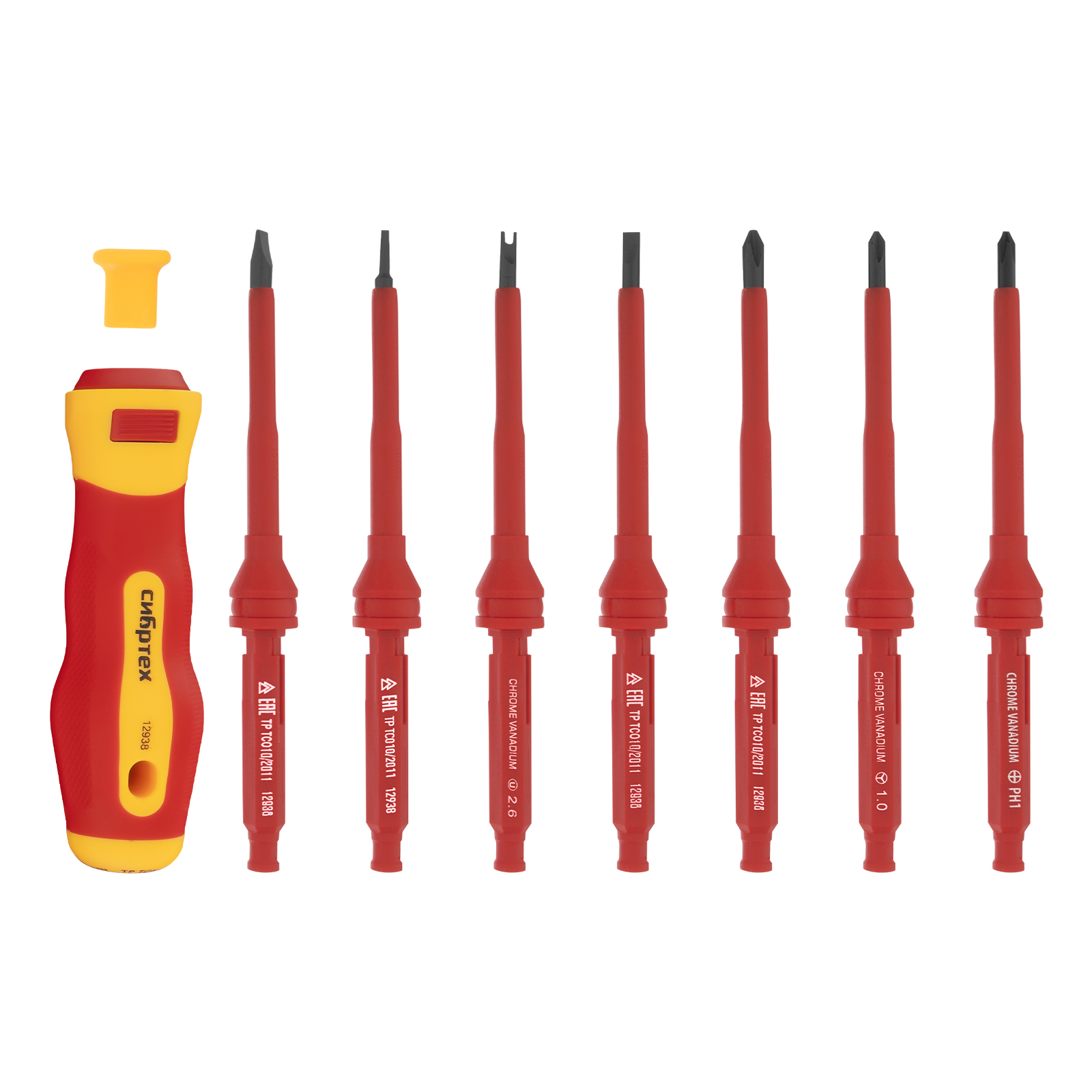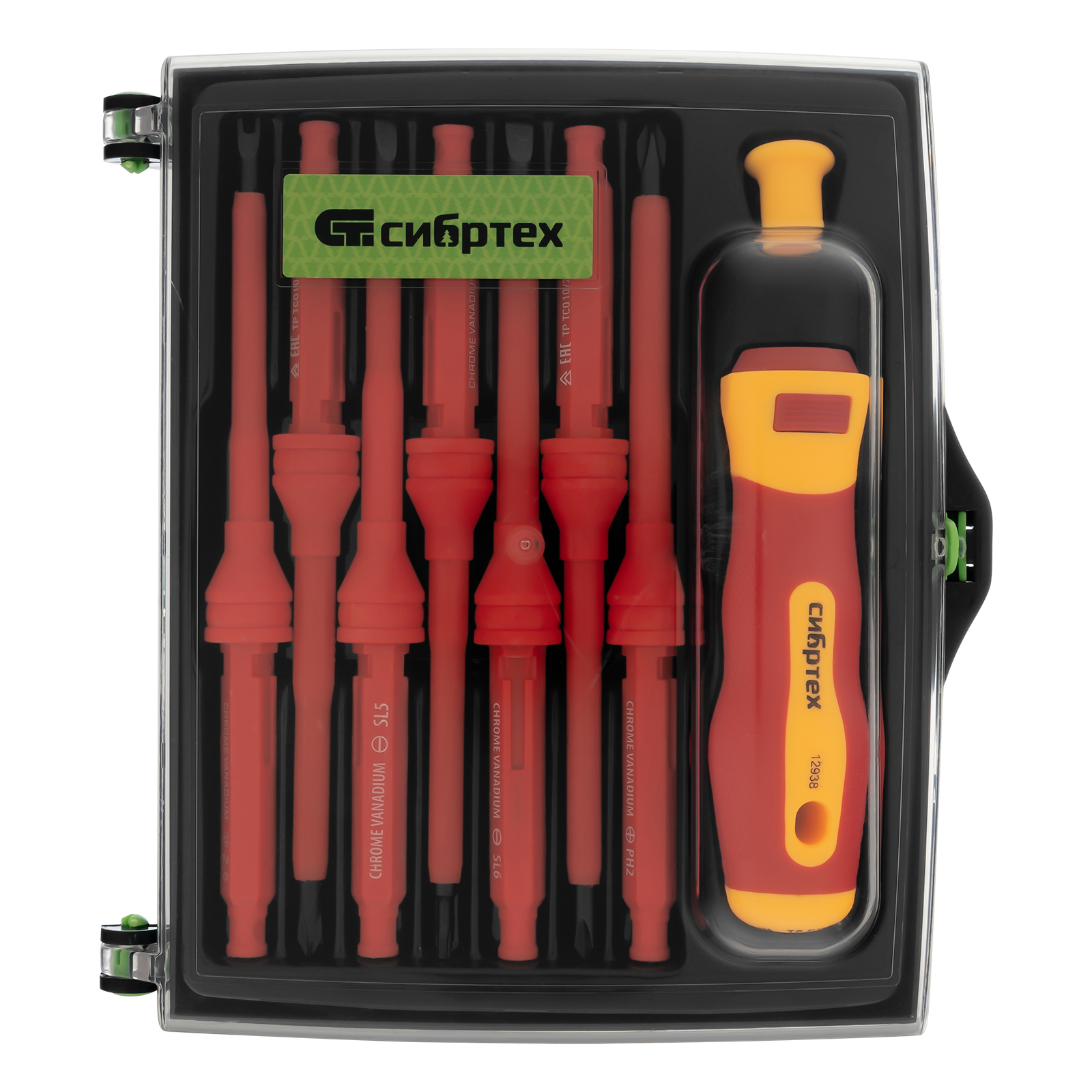 Отвертка со сменными жалами, диэлектрическая до 1000 В, 9 предметов, CrV Сибртех в Воронеже