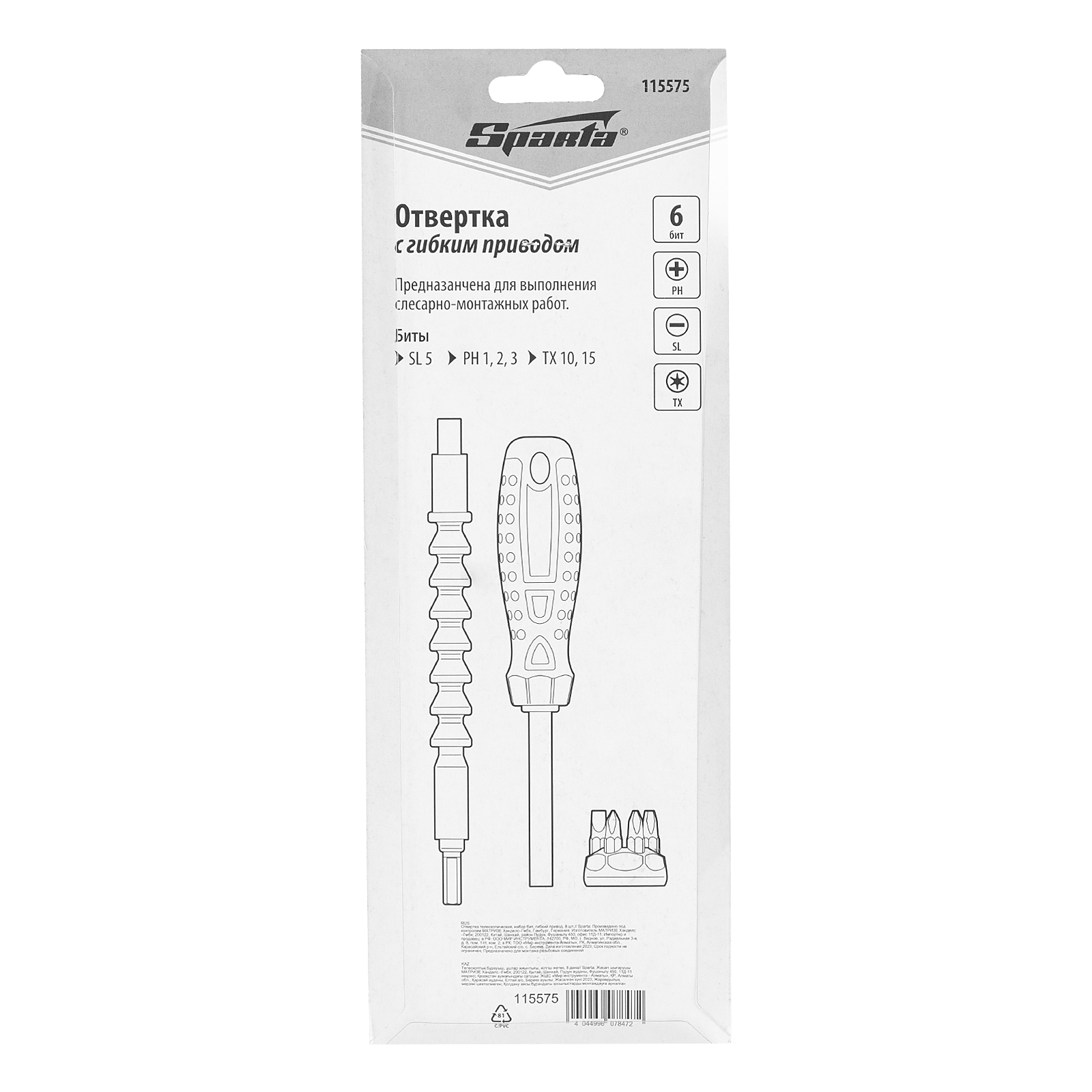 Отвертка телескопическая, набор бит, гибкий привод, 8 шт, Sparta в Воронеже