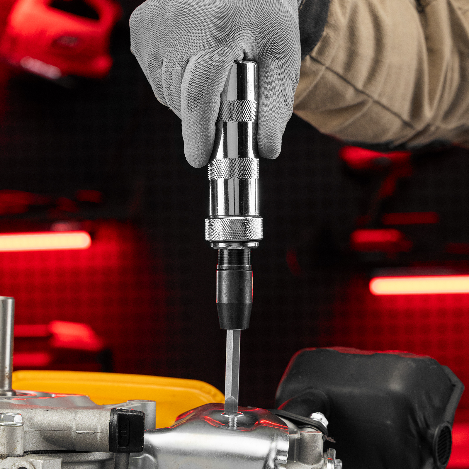 - Возможность установки торцевых головок — под съемной головкой имеется присоединительный квадрат 1/4".