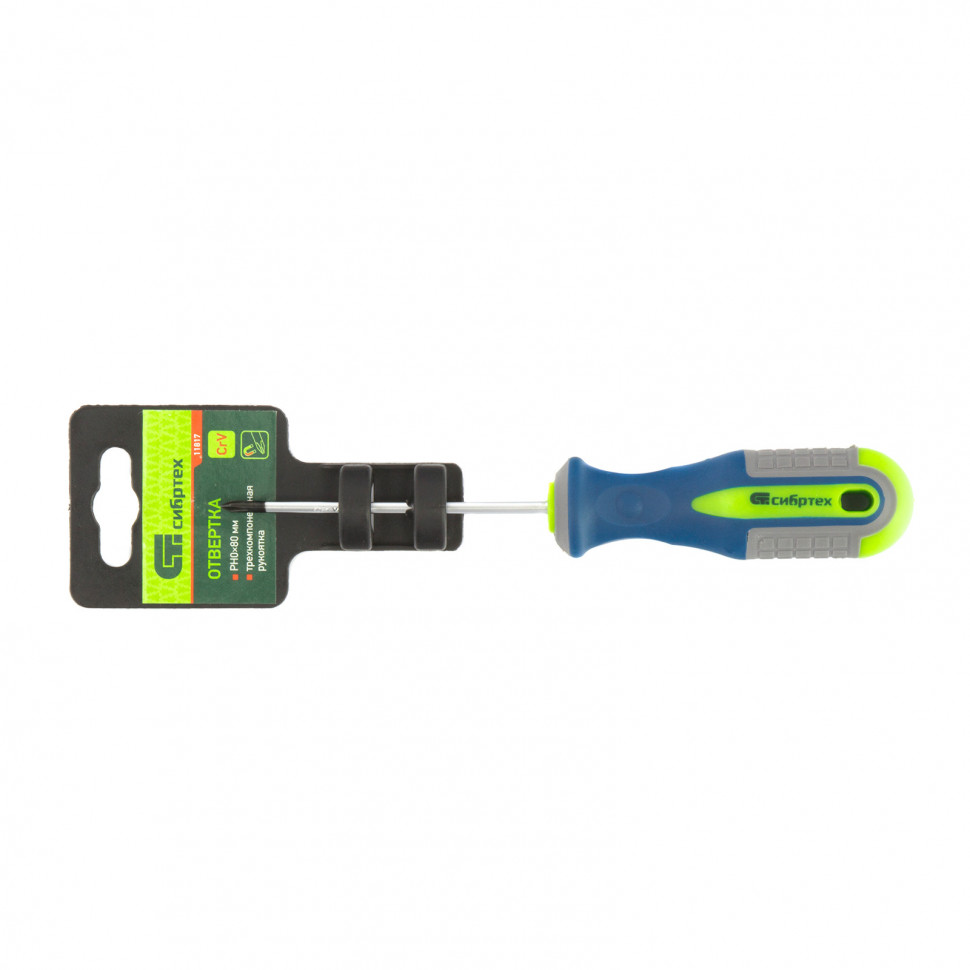 Отвертка, PH0 х 80 мм, CrV, трехкомпонентная рукоятка Сибртех в Воронеже