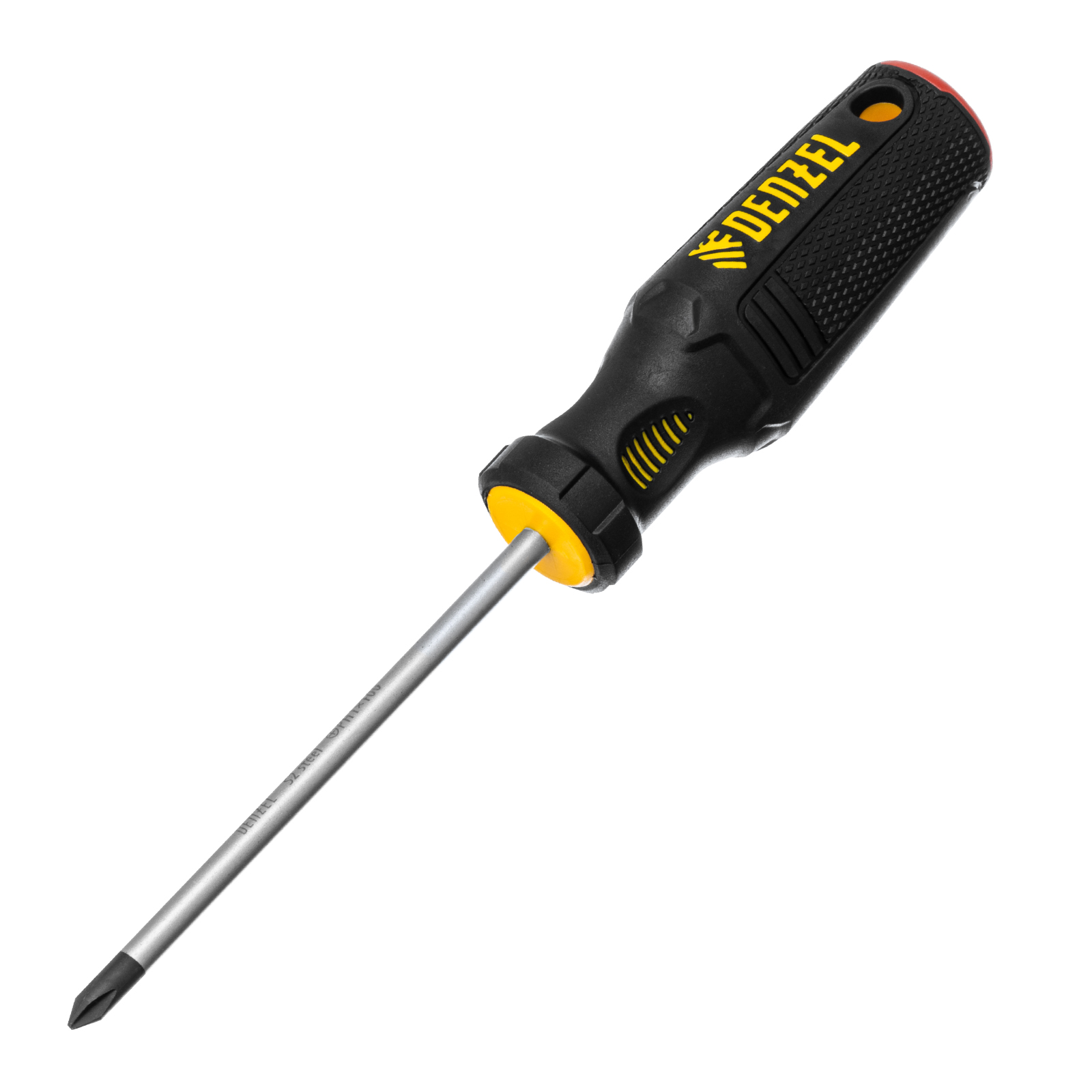 Отвертка Denzel 121747 с трехкомпонентной рукояткой, со стержнем из стали S2, длиной 100 мм, предназначена для закручивания и откручивания резьбового крепежа типа PH1. Высокоточный намагниченный шлиц избавляет мастера от необходимости придерживать винт или саморез рукой. Отвертка рекомендована для профессионального использования.