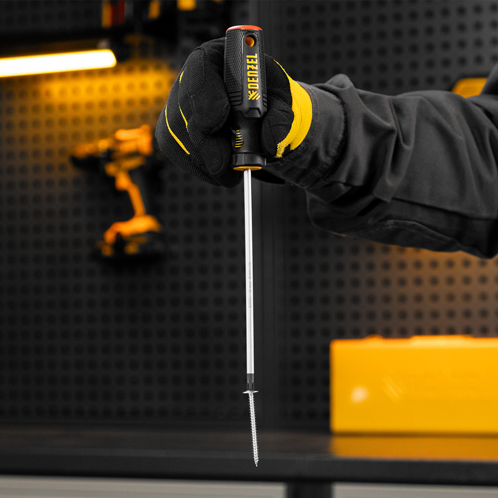 - Удобное хранение — отверстие в рукоятке позволяет подвешивать отвертку на крючок или скобу.