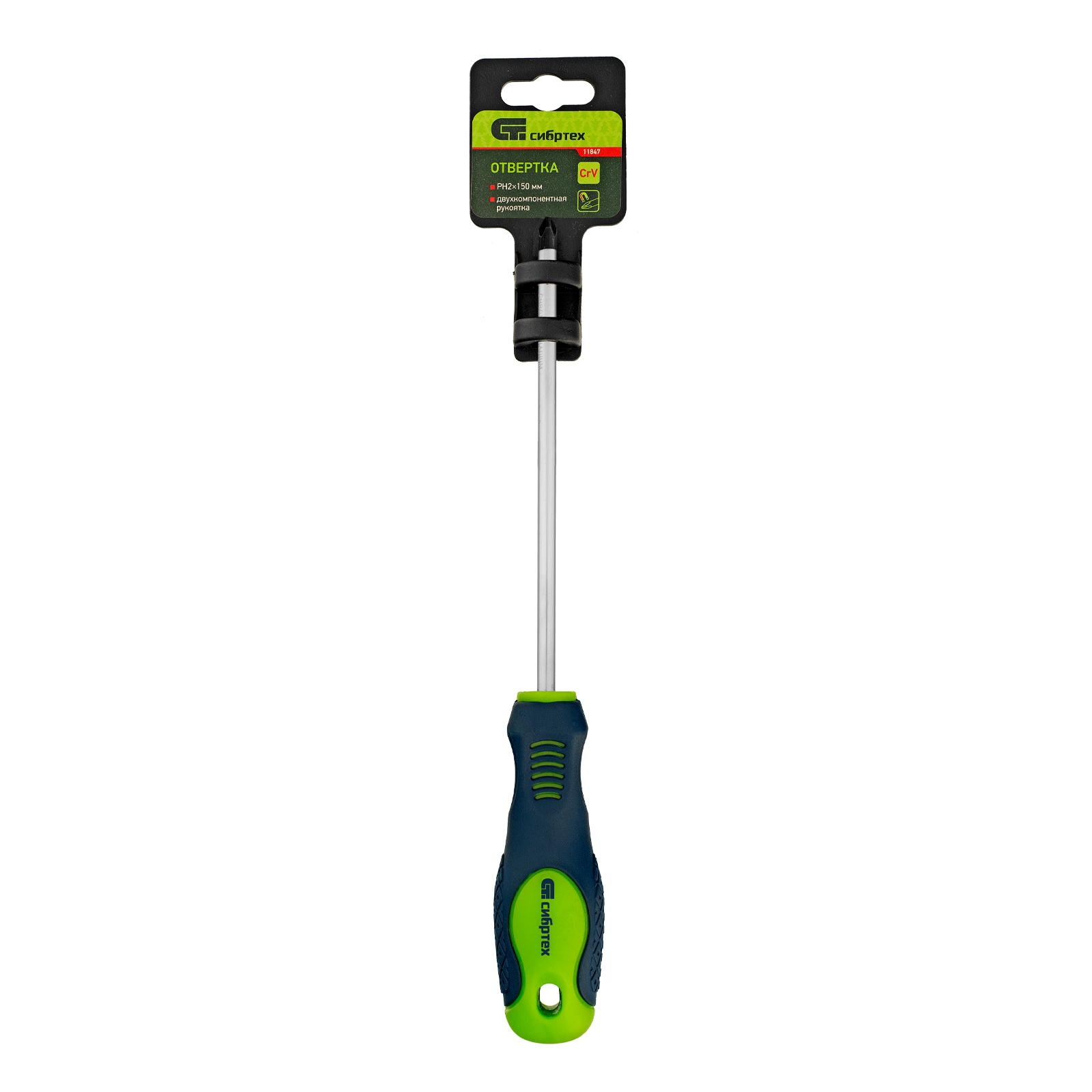 Отвертка, PH2 х 150 мм, CrV, двухкомпонентная рукоятка Сибртех в Воронеже
