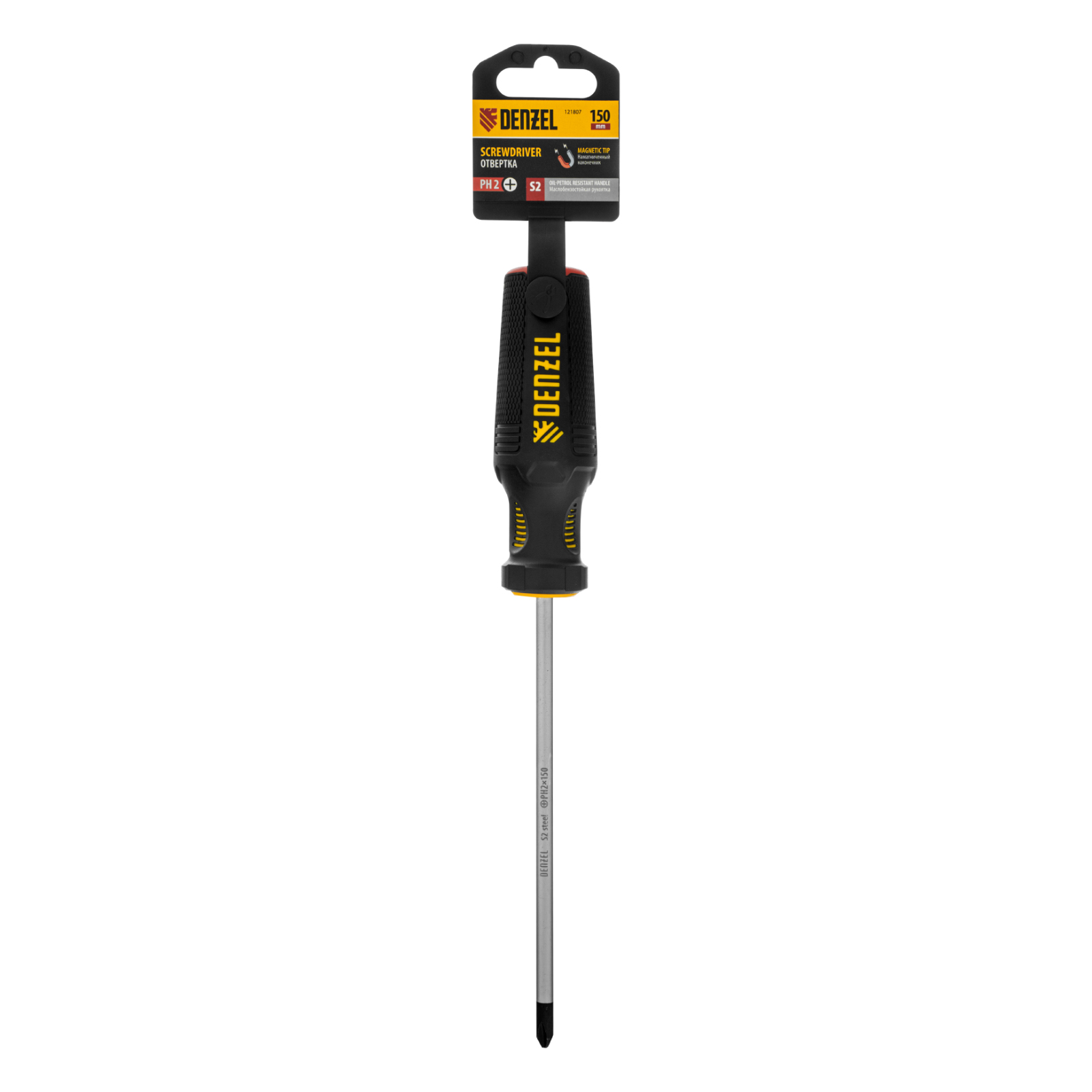 Отвертка Denzel 121807 с трехкомпонентной рукояткой, со стержнем из стали S2, длиной 150 мм, предназначена для закручивания и откручивания резьбового крепежа типа PH2. Высокоточный намагниченный шлиц избавляет мастера от необходимости придерживать винт или саморез рукой. Отвертка рекомендована для профессионального использования.