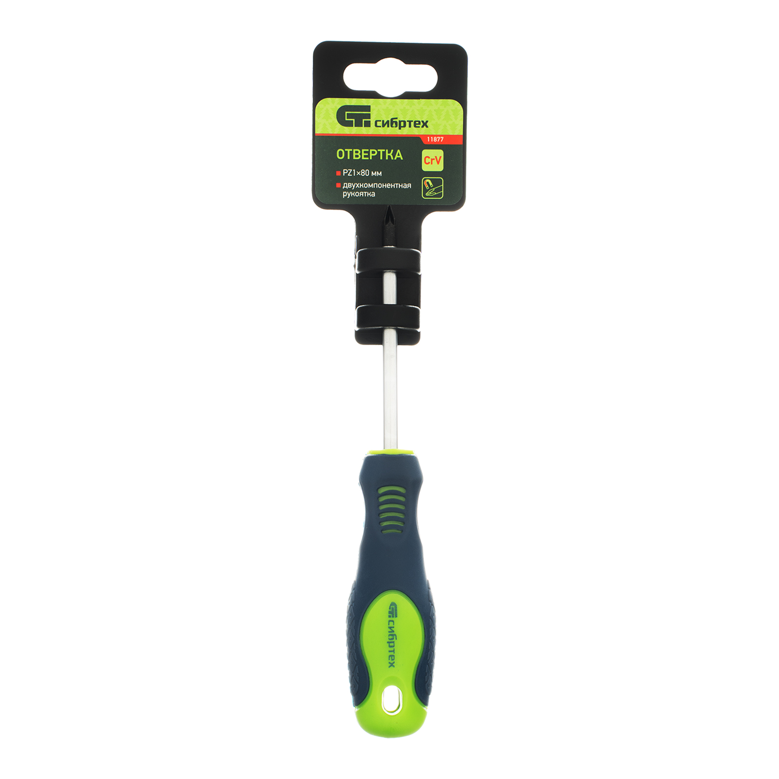 Отвертка, PZ1 х 80 мм, CrV, двухкомпонентная рукоятка Сибртех в Воронеже