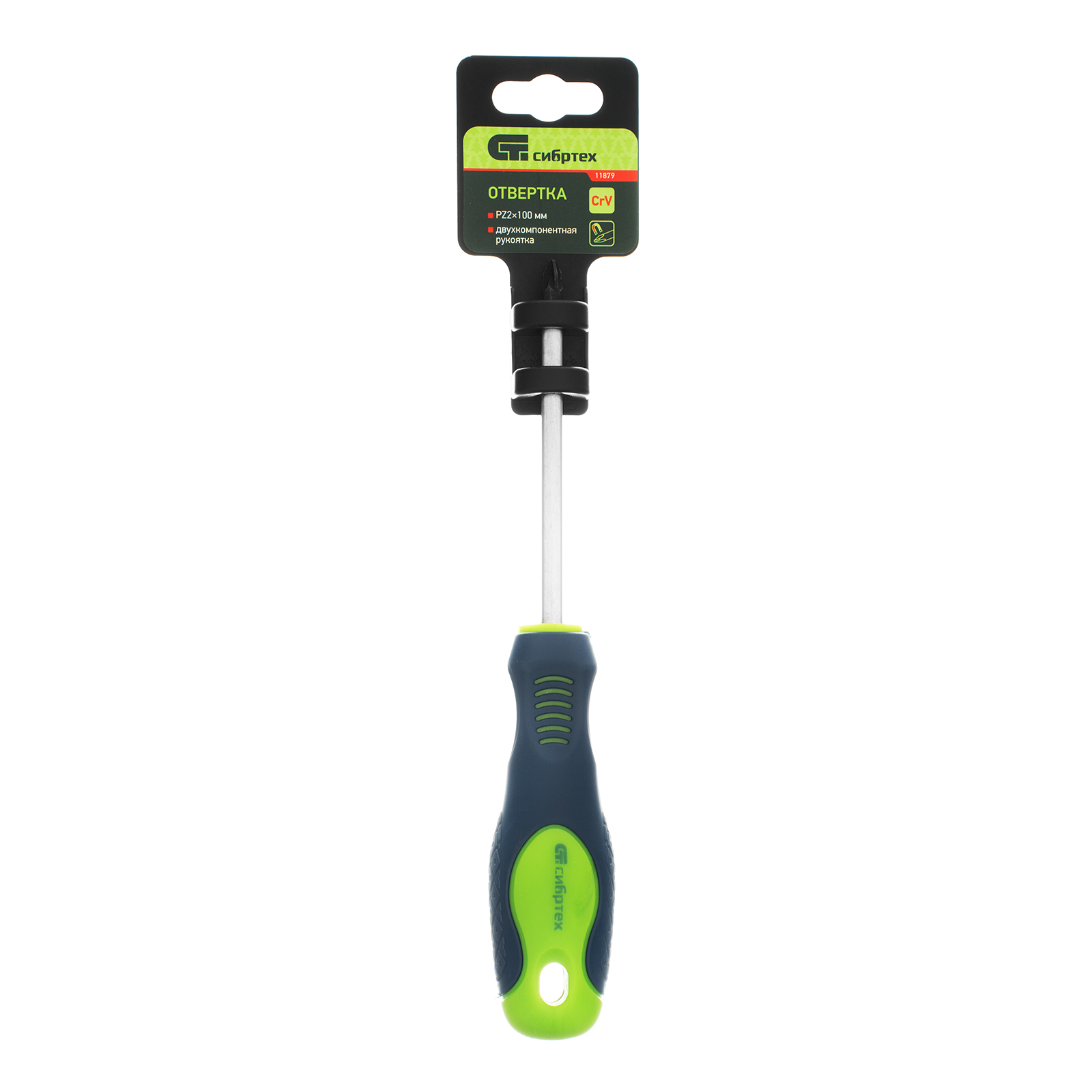 Отвертка, PZ2 х 100 мм, CrV, двухкомпонентная рукоятка Сибртех в Воронеже