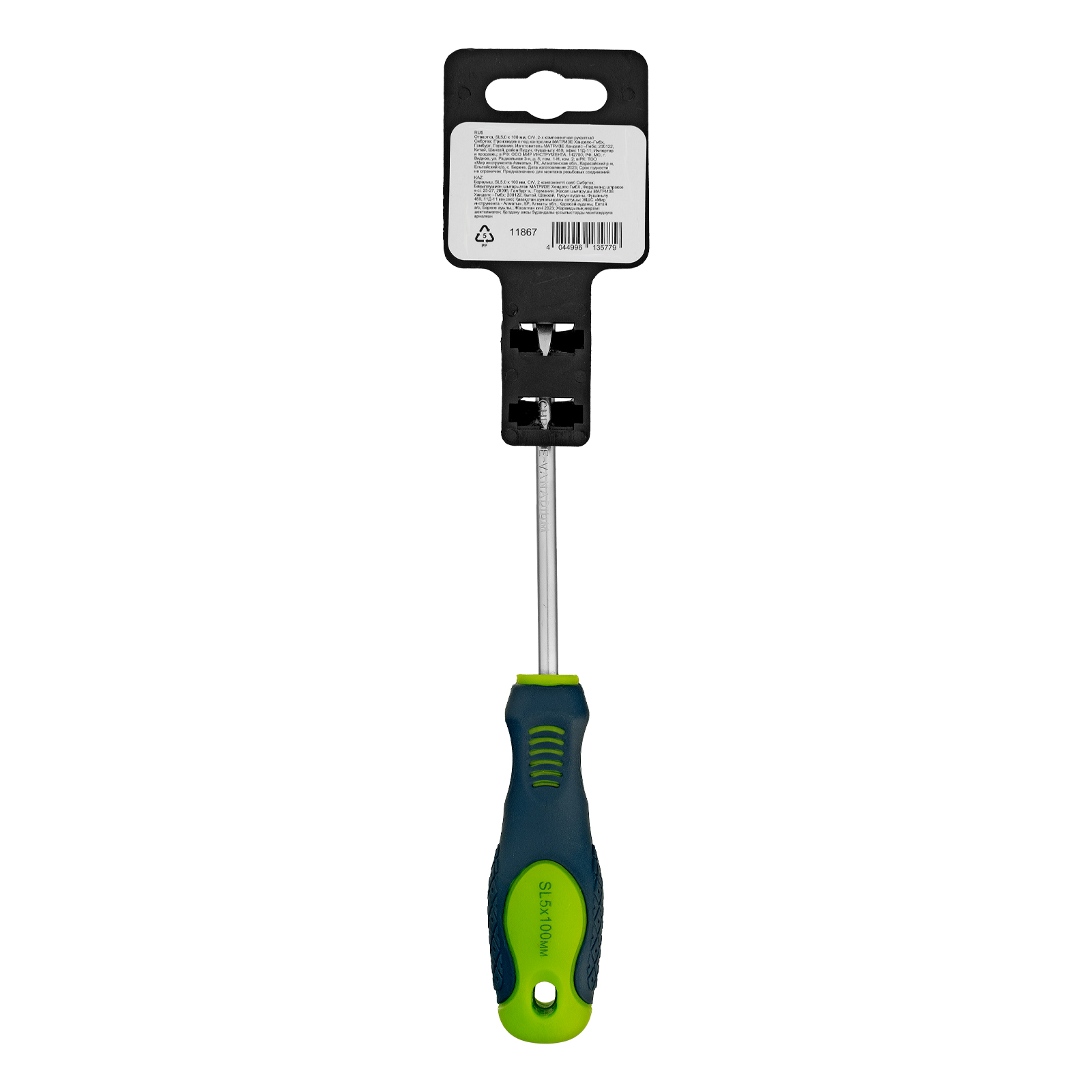 Отвертка Сибртех 11867, SL5,0 х 100 мм, из стали CrV, с 2-х компонентной рукояткой, подходит для работ, не требующих большого усилия затяжки. С ее помощью осуществляется монтаж/демонтаж крепежных элементов типа Slotted. Отвертка оснащена стержнем длиной 100 мм для работ в углублениях и на поверхностях. Инструмент пригодится для полупрофессионального применения.