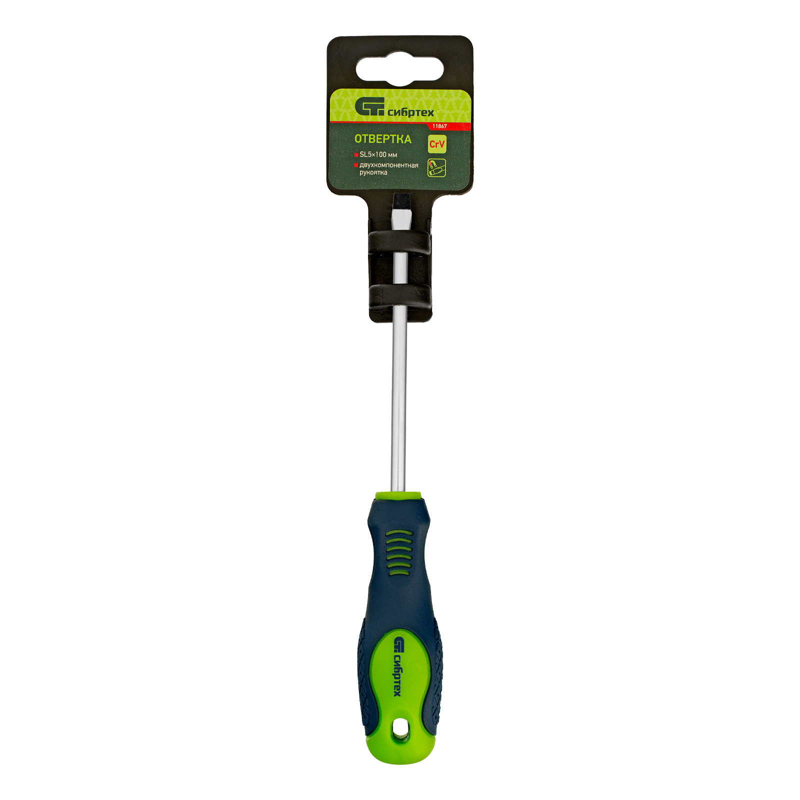 Отвертка, SL5 х 100 мм, CrV, двухкомпонентная рукоятка Сибртех в Воронеже