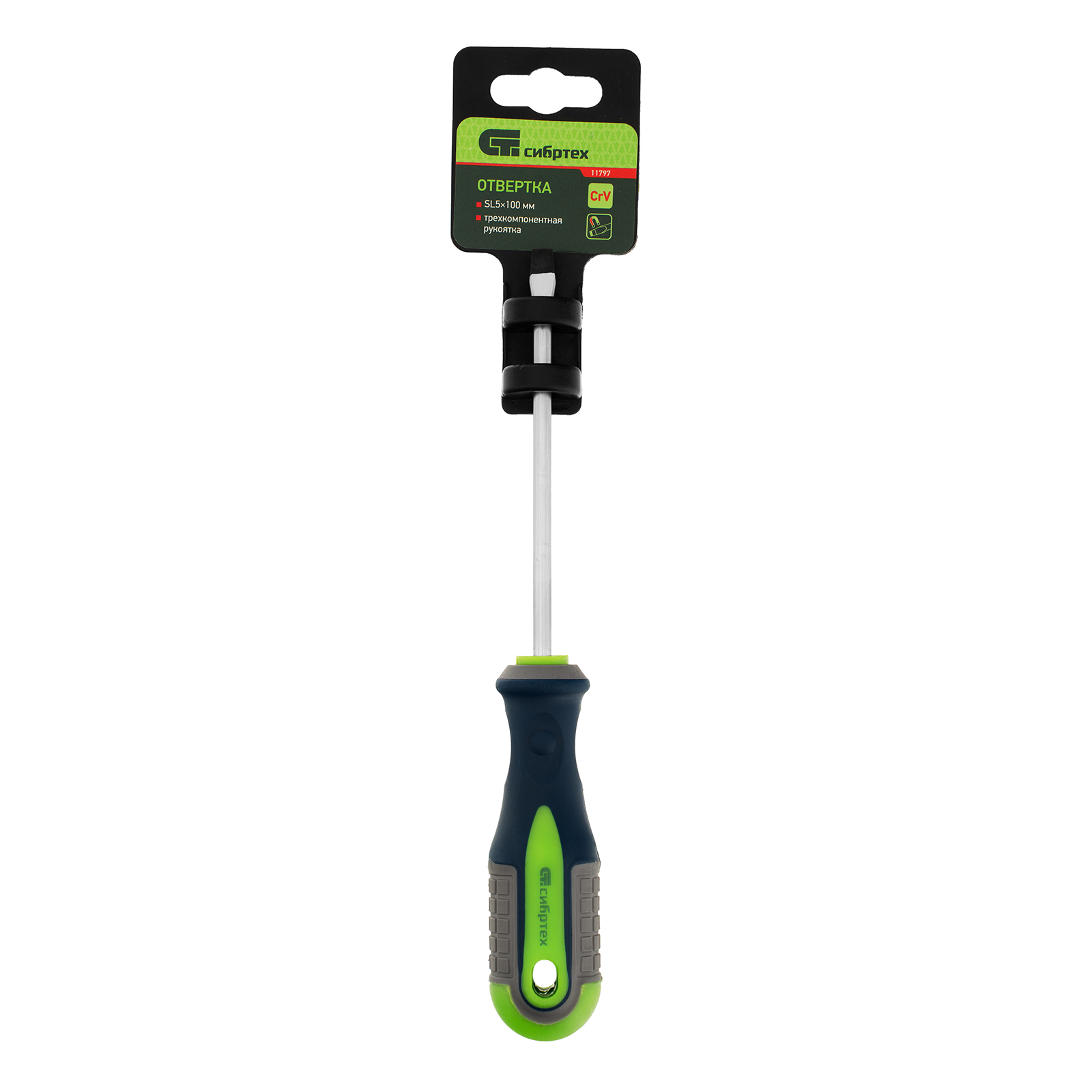 Отвертка, SL5 х 100 мм, CrV, трехкомпонентная рукоятка Сибртех в Воронеже
