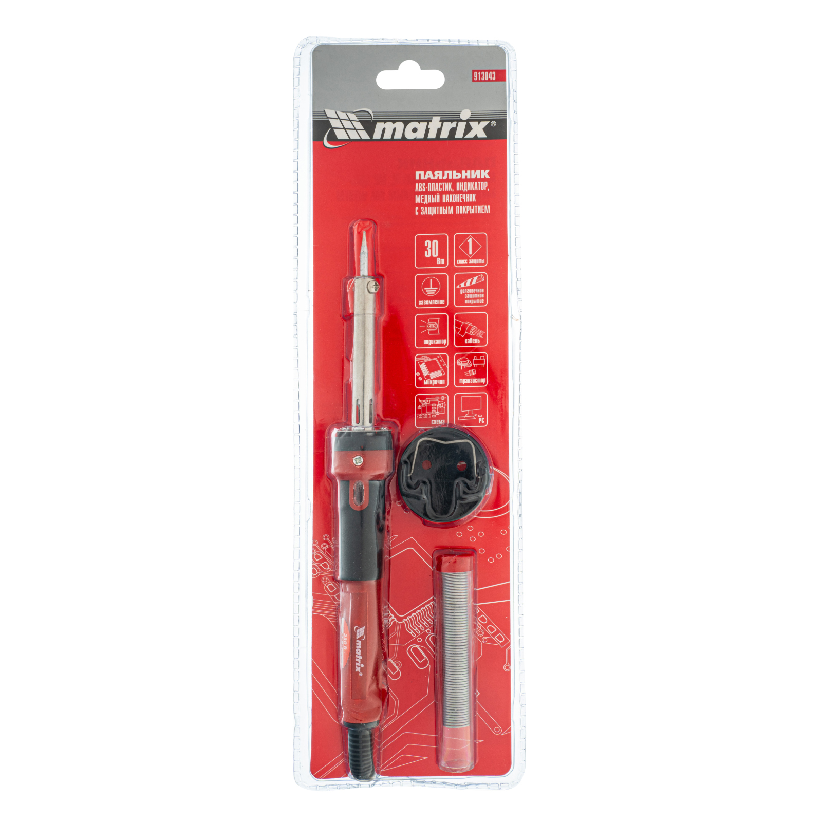 Паяльник, пластик ABS, класс защиты 1, индикатор, медный наконечник с долговечным покрытием, 220 В, 30 W Matrix в Воронеже