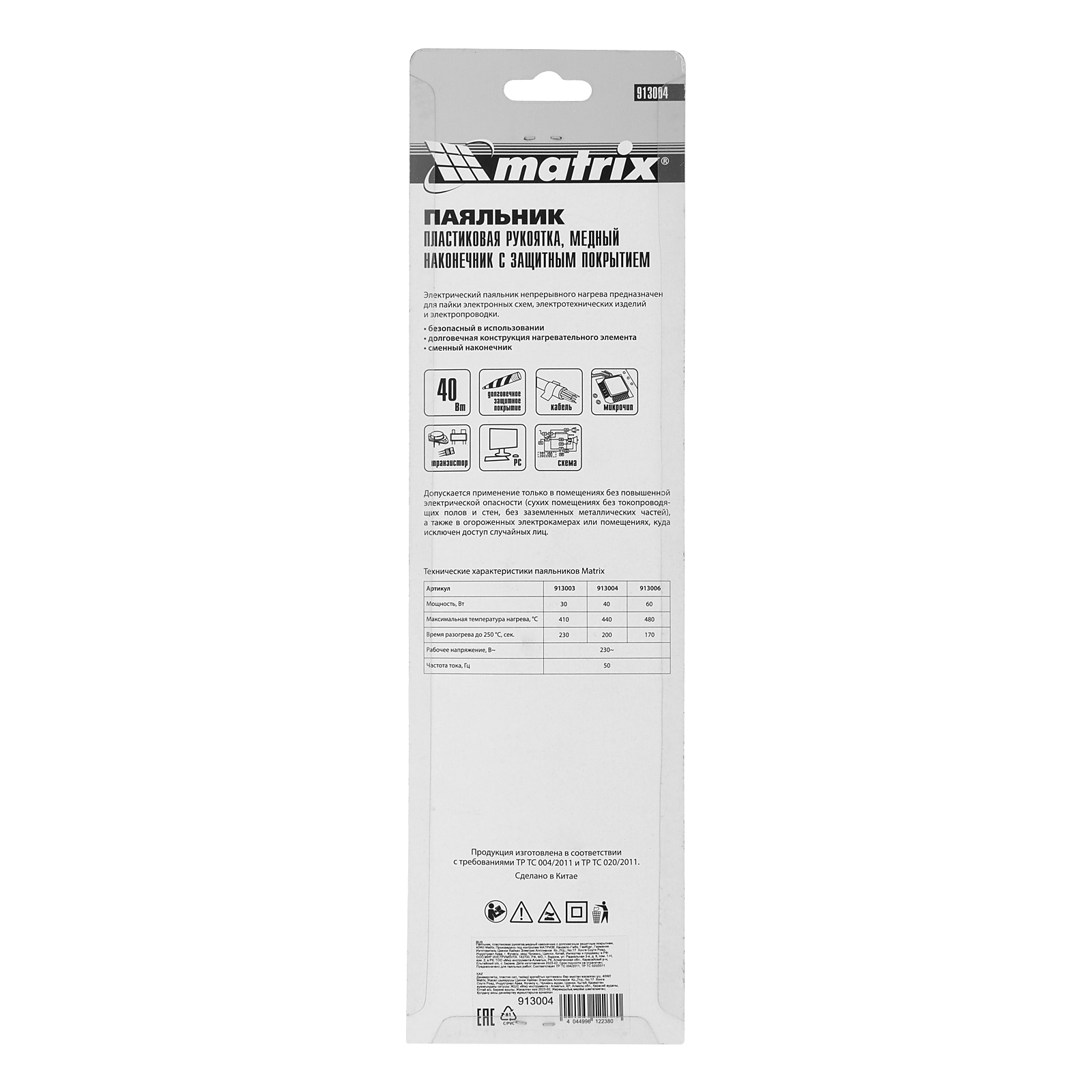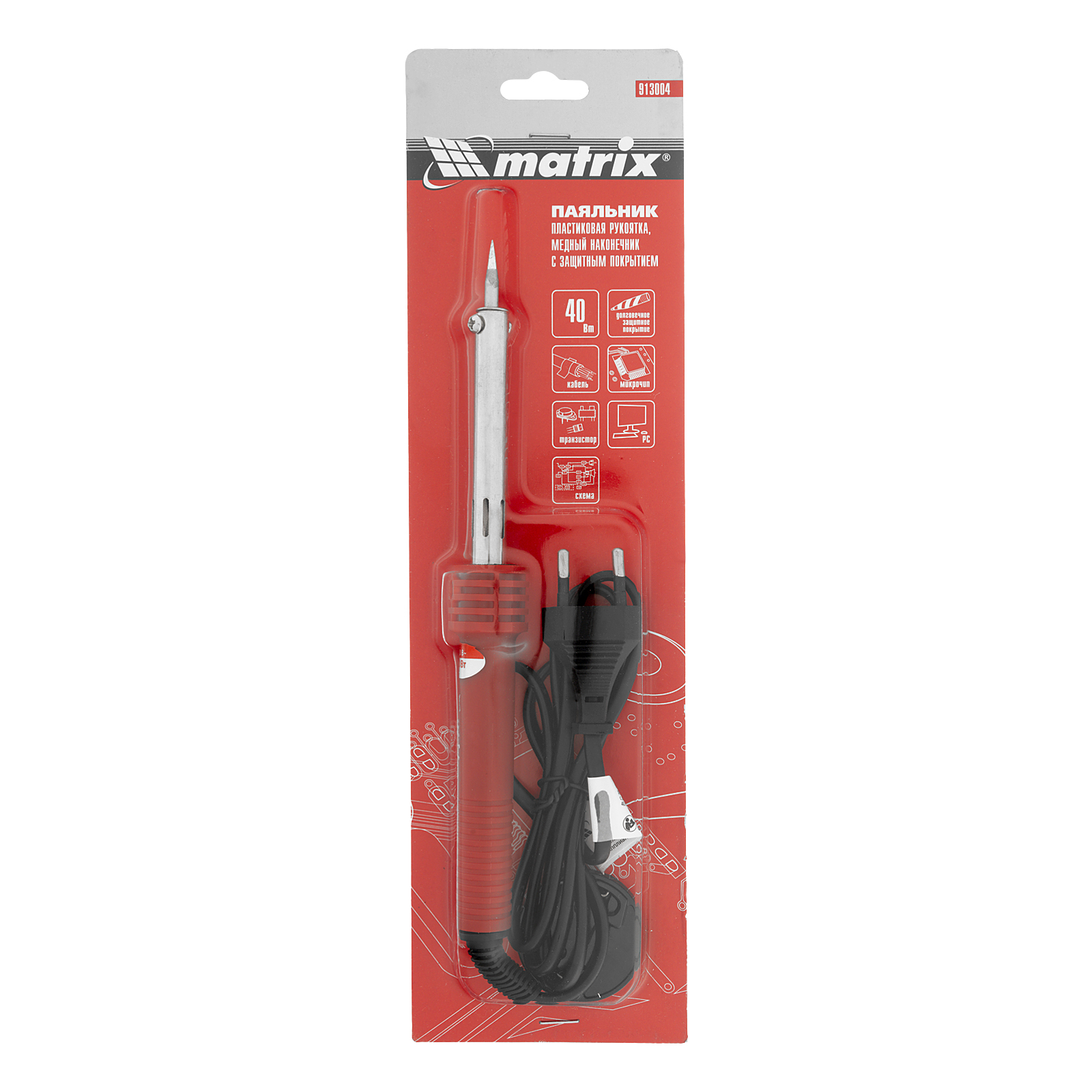 Паяльник, пластиковая рукоятка, медный наконечник с долговечным защитным покрытием, 220 В, 40 W Matrix в Воронеже
