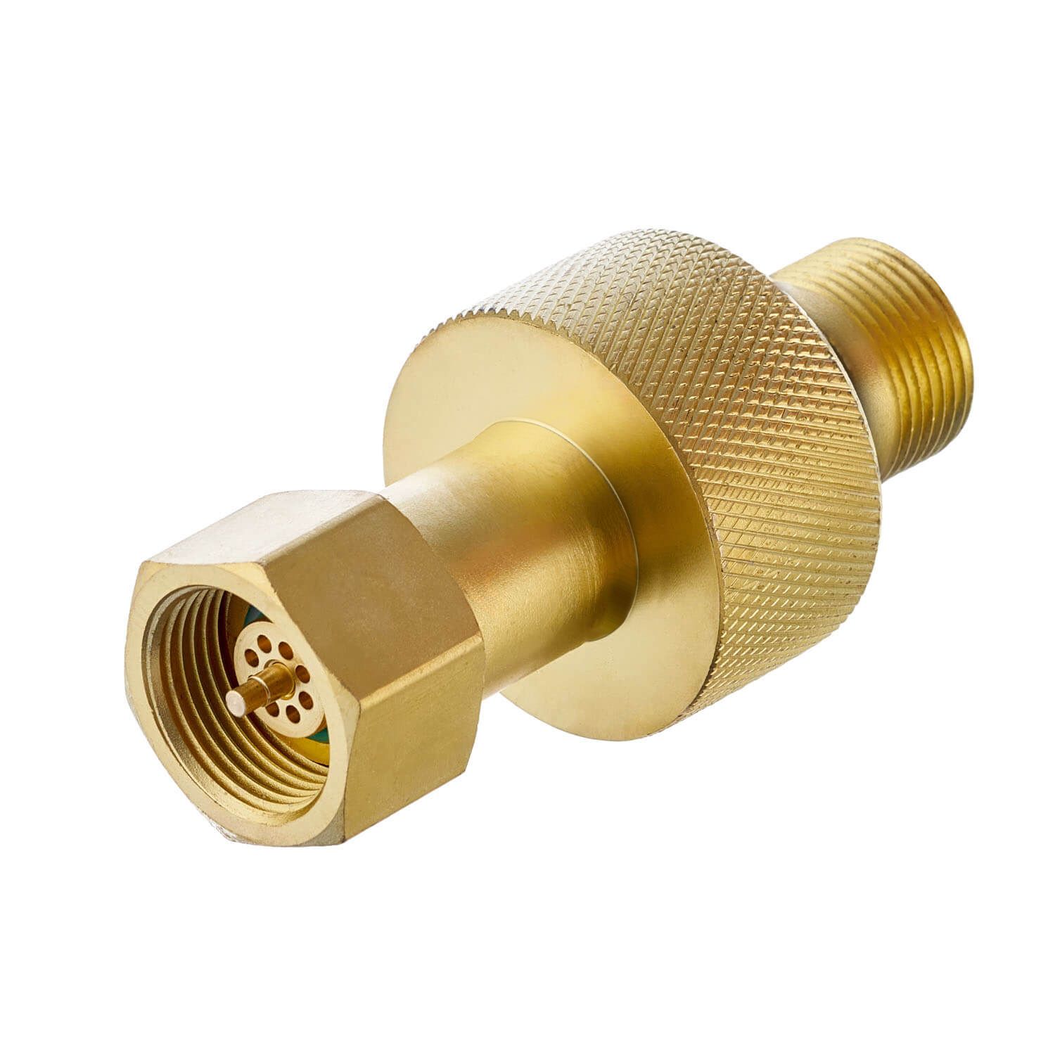 Переходник идет в комплекте с уплотнительным резиновым кольцом, которое устанавливается на центральную часть выходного штуцера со стороны присоединения заполняемого баллона под накидной гайкой с внутренней резьбой G3/4-В.