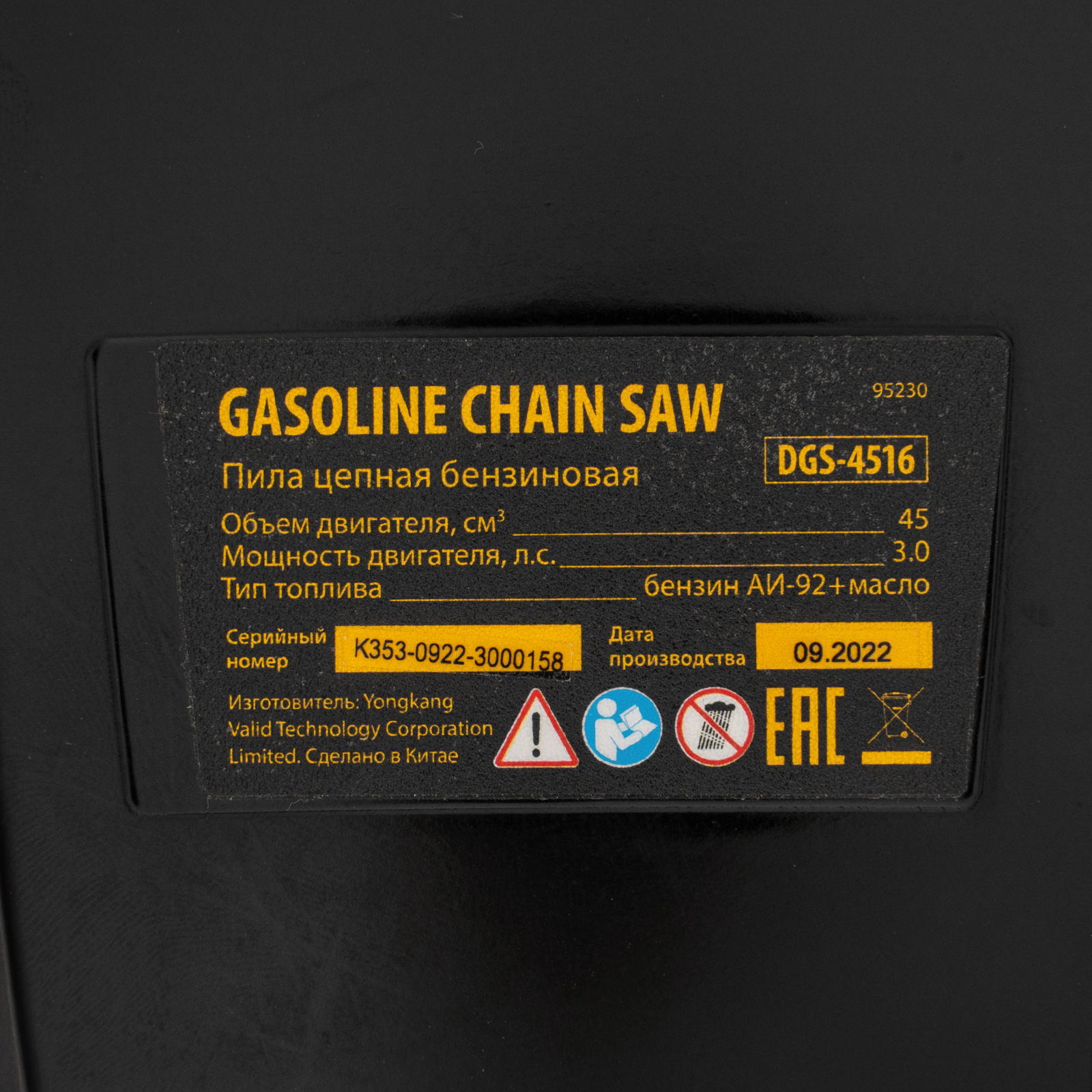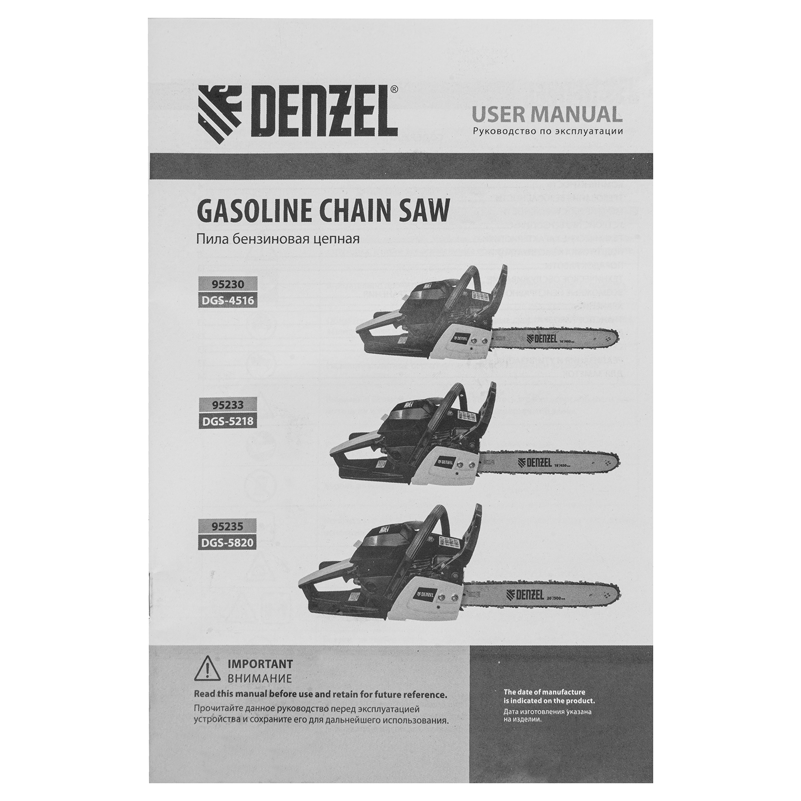 Пила цепная бензиновая DGS-4516, шина 40 см, 45 см3, 3 л.с, шаг 3/8, паз 1.3 мм, 57 звеньев Denzel в Воронеже