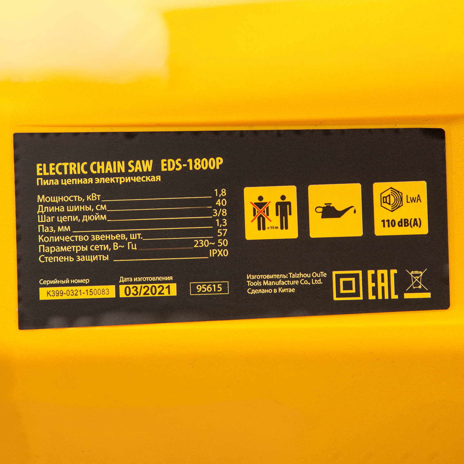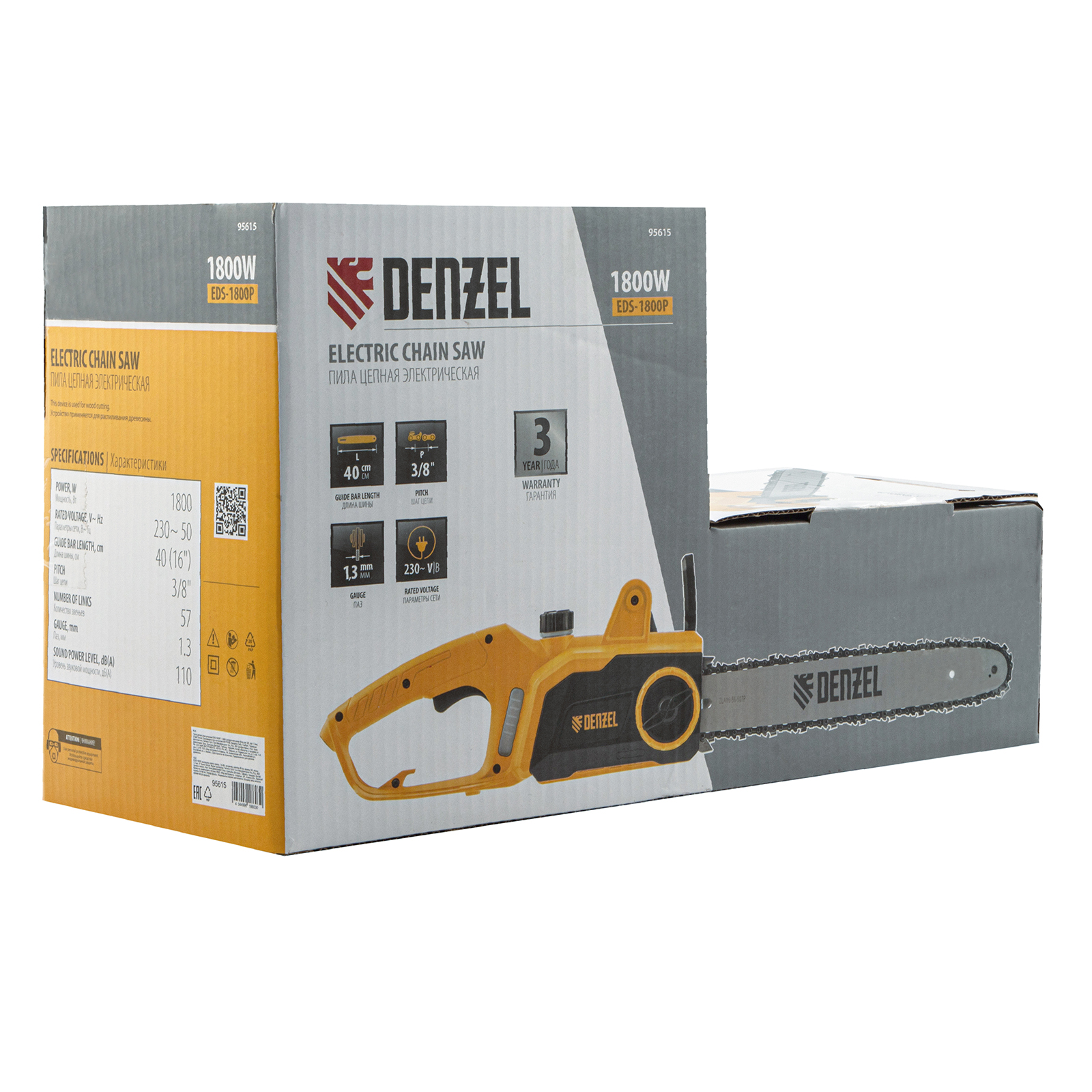 Пила цепная электрическая EDS-1800P, 1.8 кВт,поперечная, шина 40 см, шаг 3/8, паз 1.3 мм, 57 звеньев Denzel в Воронеже