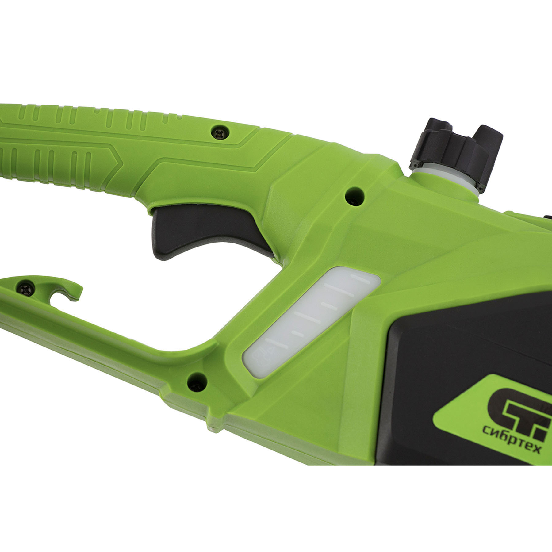 Электрическая цепная пила Сибртех ПЦЭ-1800П 95612 мощностью 1,8 кВт, с поперечным расположением двигателя, комплектуется шиной длиной 14'' (35 см). Цепь движется со скоростью 13,5 м/с, поэтому пила эффективна для распила деревянных заготовок, благоустройства дачного участка, проведения ремонтных и строительных работ. Инструмент не нуждается в приготовлении топливной смеси и отслеживании ее уровня для своевременной заправки. Уровень шума во время работы пилы невысок, поэтому ей можно работать как на открытом пространстве, так и в помещении.
