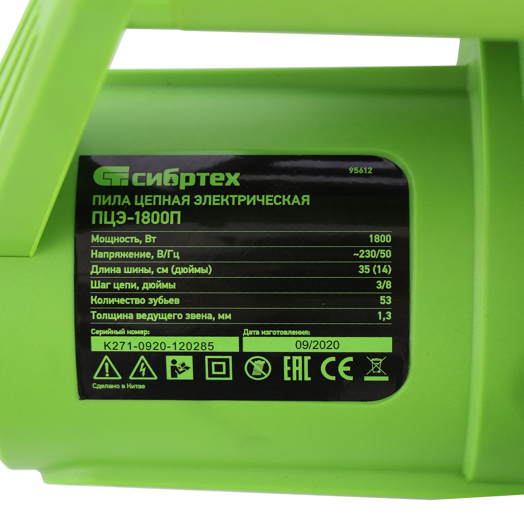 Пила цепная электрическая ПЦЭ-1800П с поперечным двигателем, 1.8 кВт, 14'' (35 см) Сибртех в Воронеже