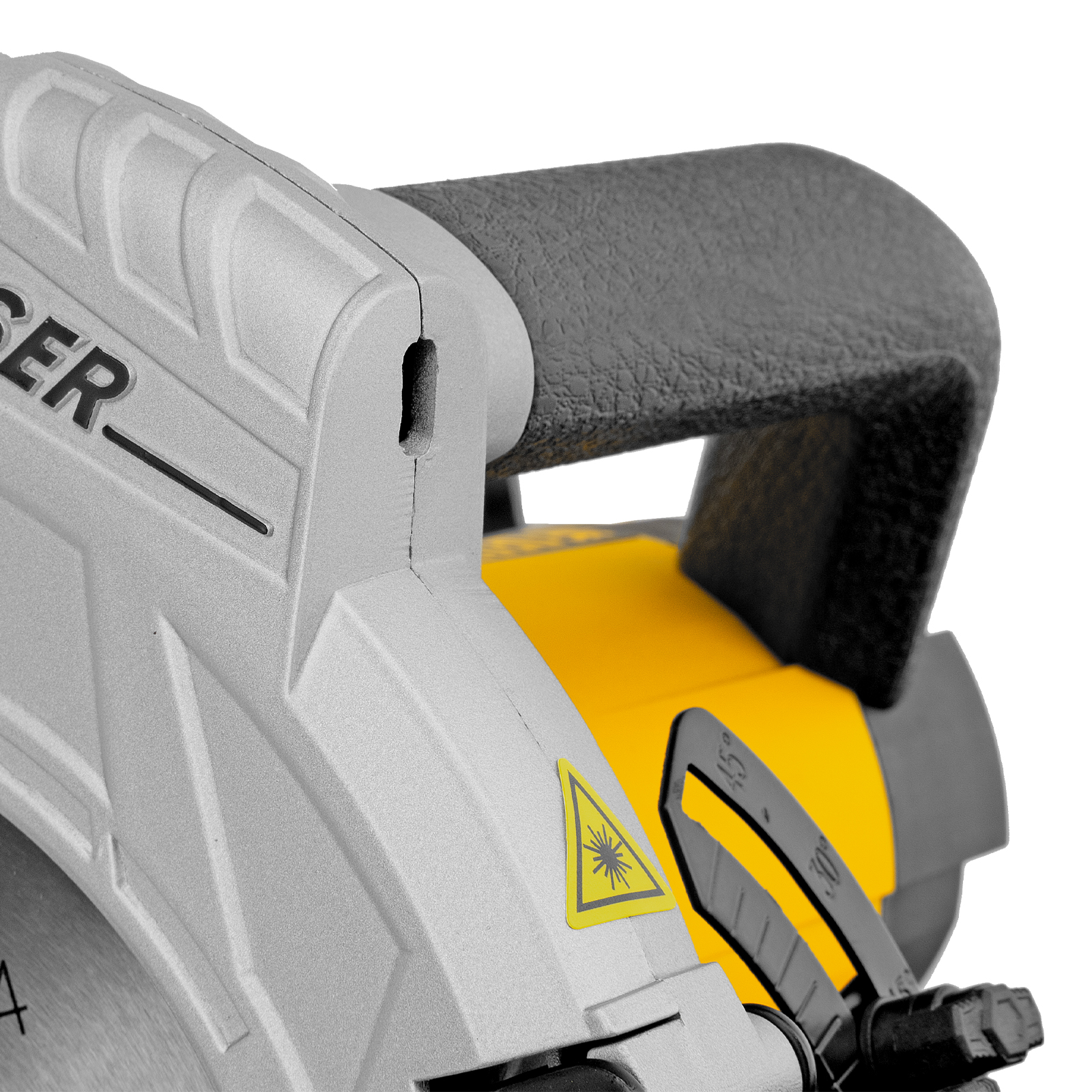 - Высокая точность — лазерный указатель, показывающий линию предстоящего среза, и стальная параллельная направляющая помогают осуществлять ровные прямые пропилы без дополнительной разметки.