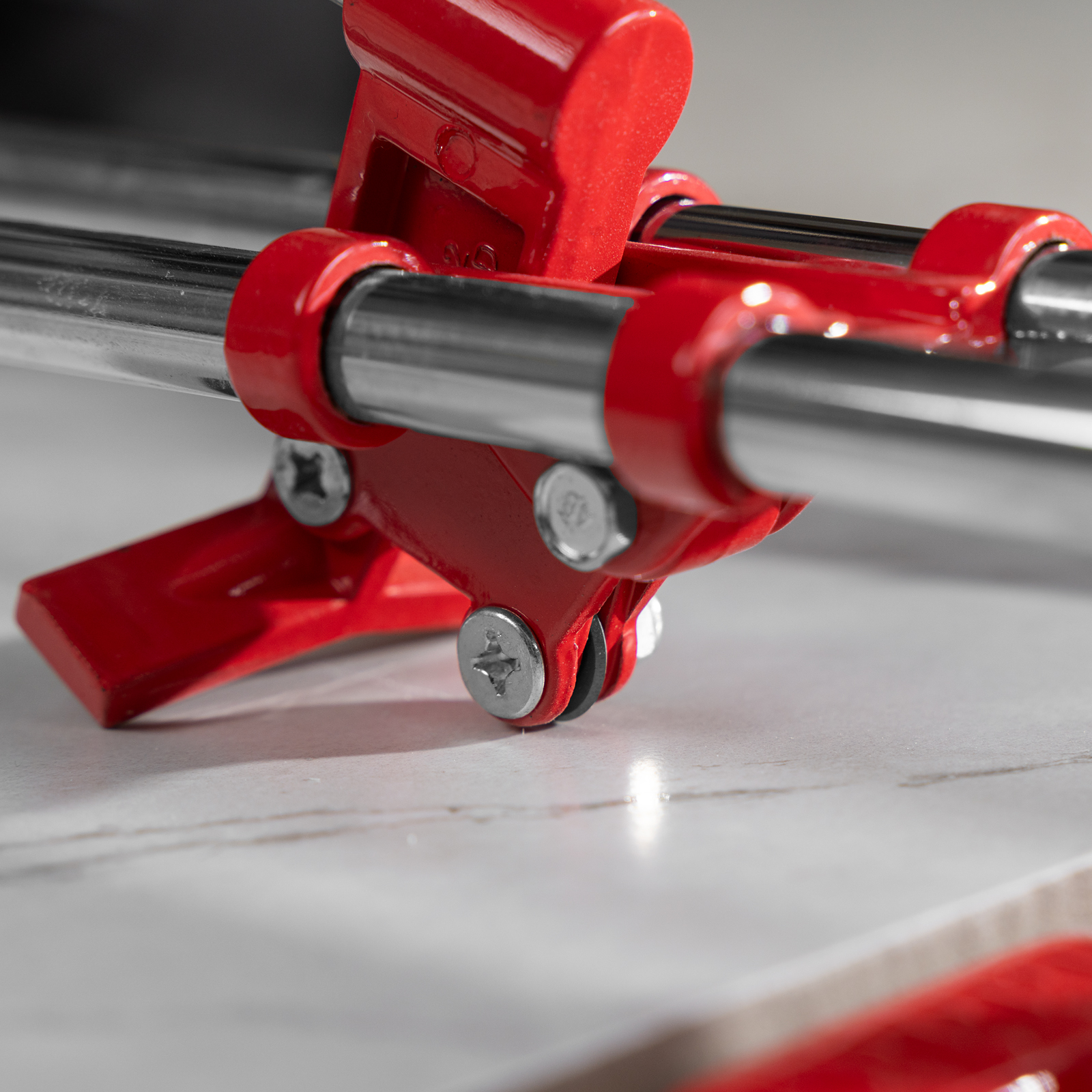 - Высокое качество работы — стальное основание обеспечивает устойчивость плиткореза, мягкие амортизирующие накладки предотвращают смещение плитки.