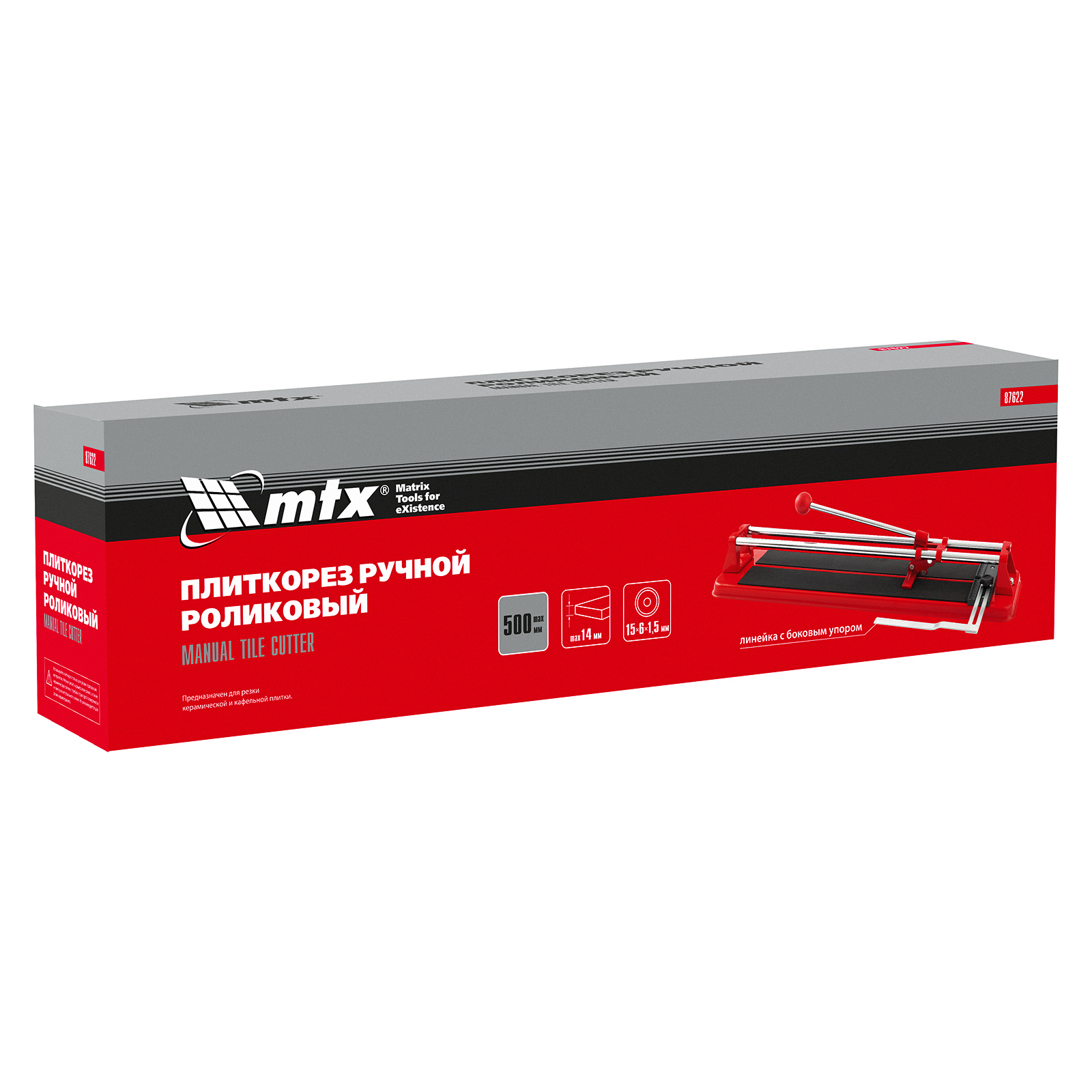 Плиткорез MTX 87622 — инструмент для работы с керамической плиткой размером до 500 х 14 мм. Упрощает и ускоряет резку, позволяет получать ровный и аккуратный срез.