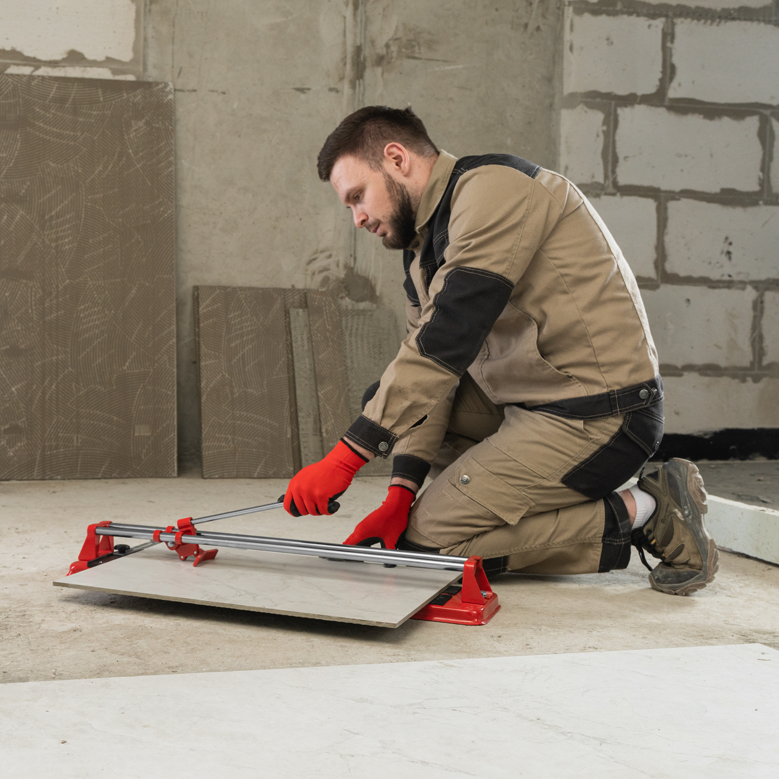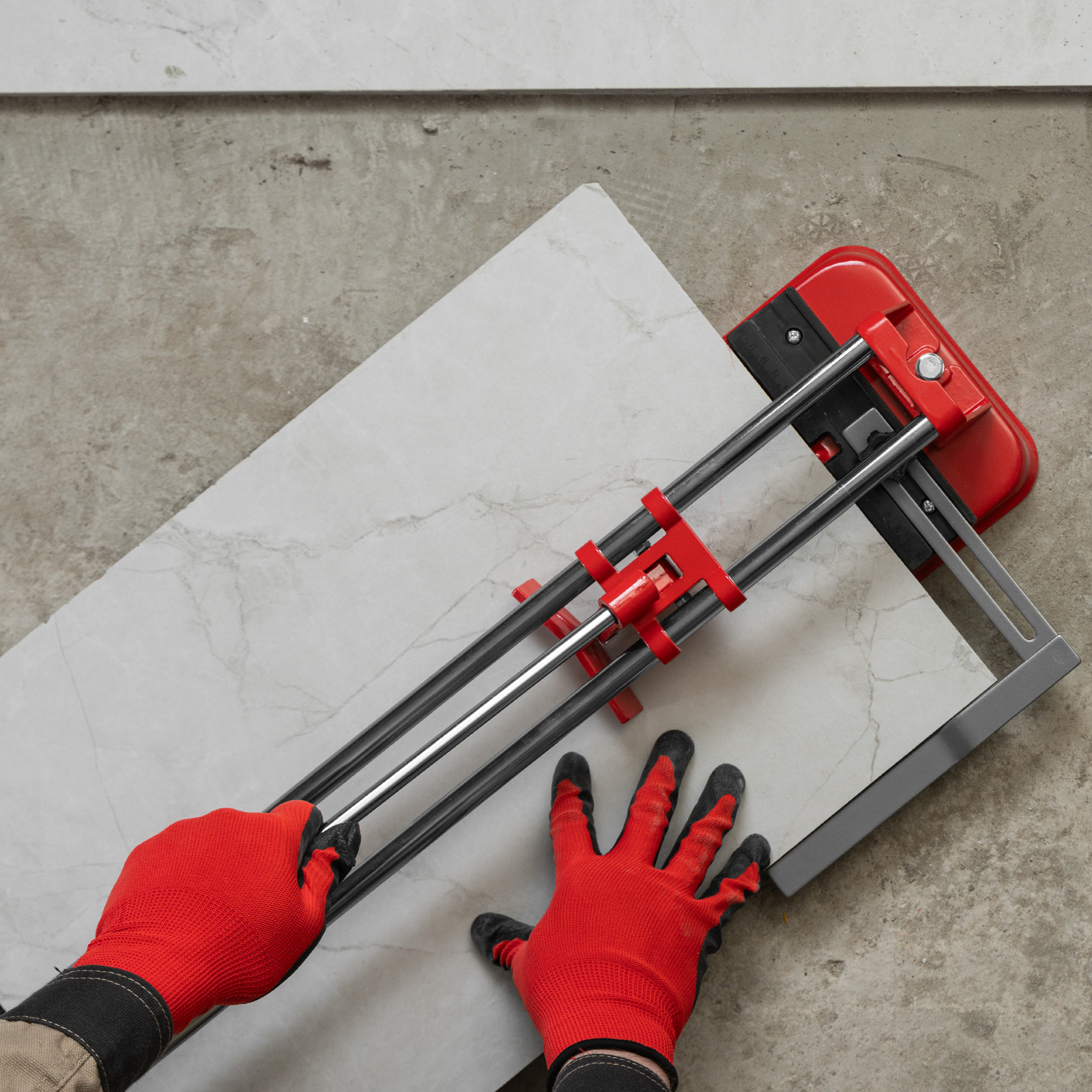 - Высокое качество работы — стальное основание обеспечивает устойчивость плиткореза, мягкие амортизирующие накладки предотвращают смещение плитки.