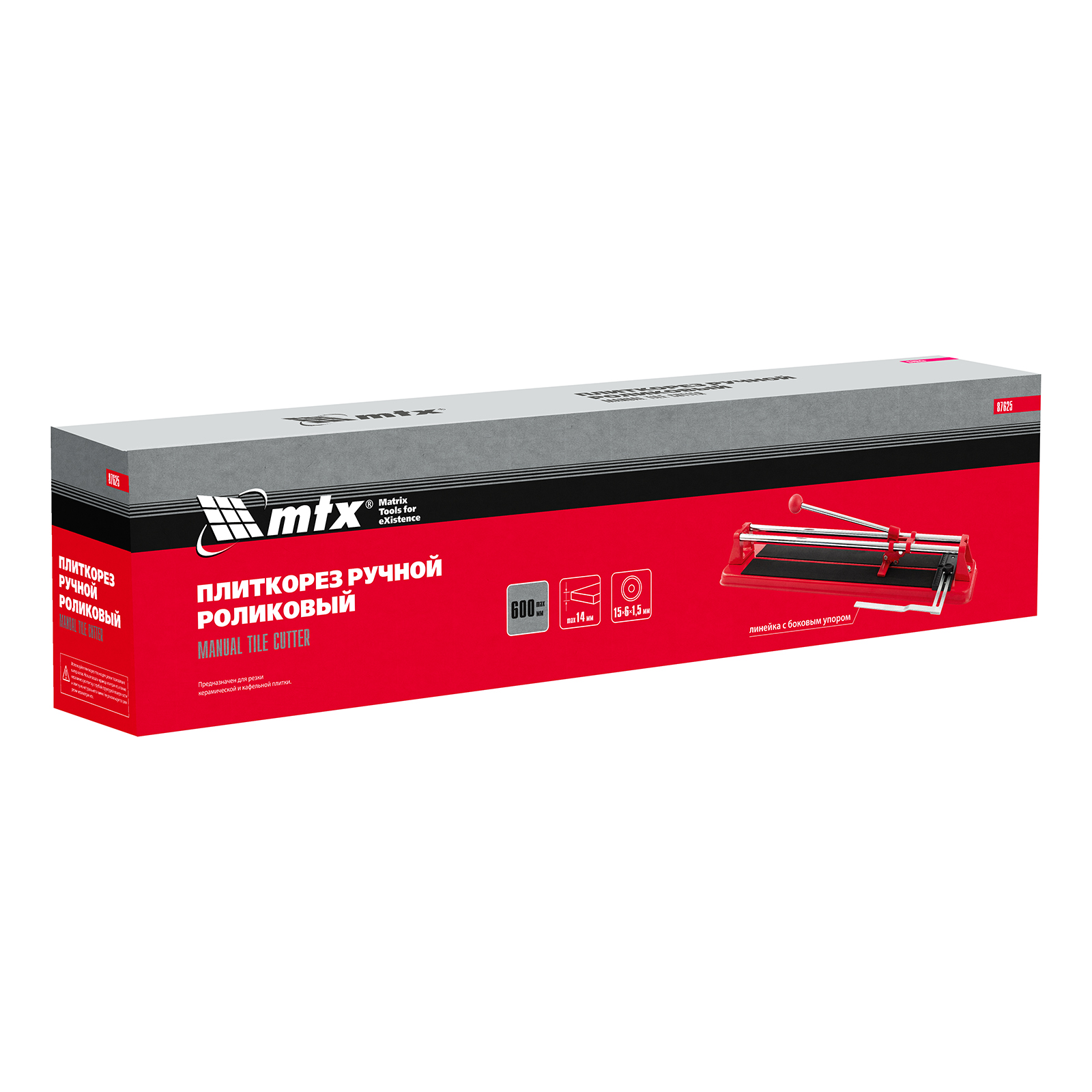 Плиткорез MTX 87625 — инструмент для работы с керамической плиткой размером до 600 х 14 мм. Упрощает и ускоряет резку, позволяет получать ровный и аккуратный срез.