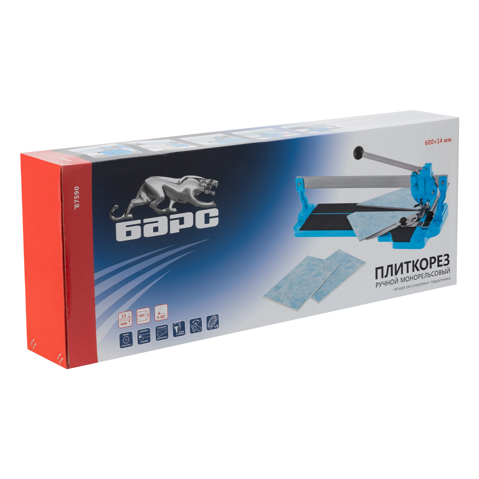 Плиткорез ручной монорельсовый 600 х 14 мм, ходовая каретка, 9/4 регулировка подшипников, литая станина Барс в Воронеже
